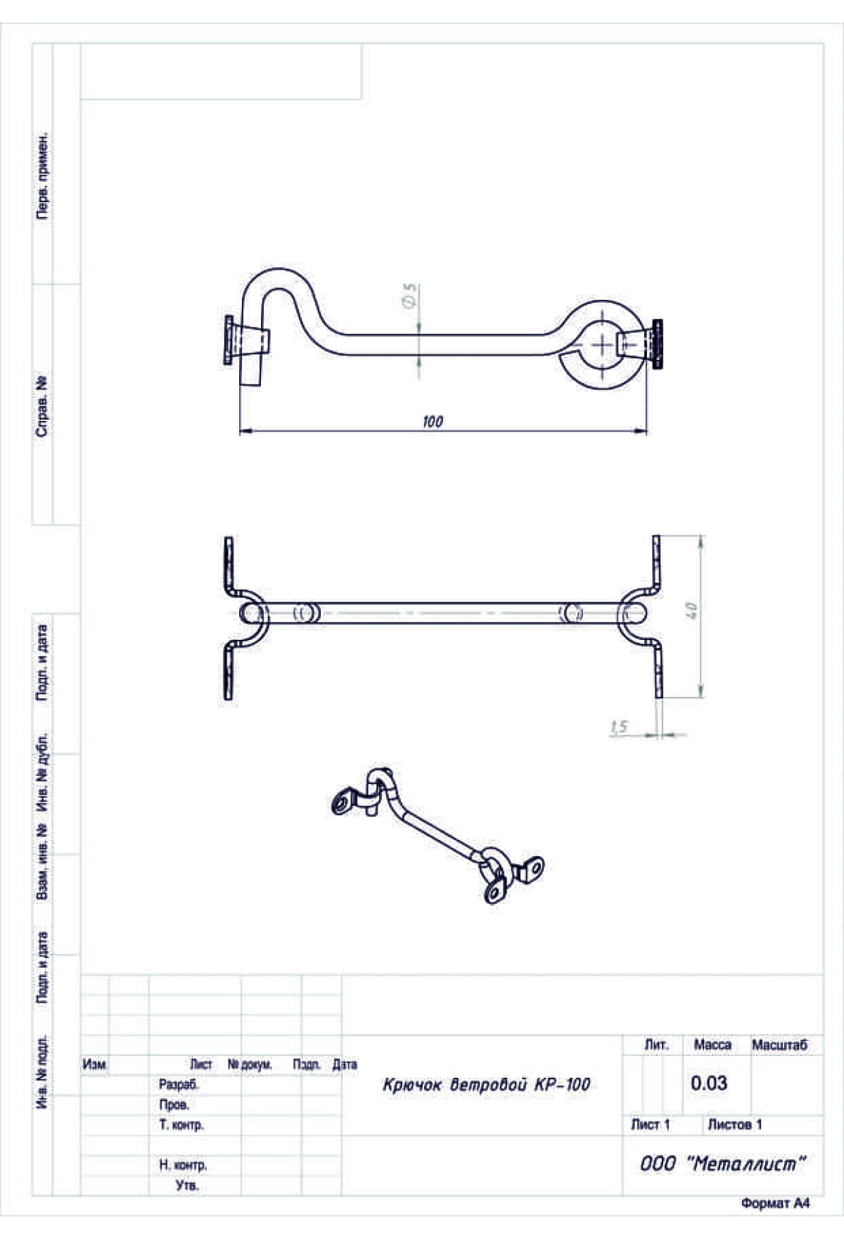 КРЮЧОК ВЕТРОВОЙ КР-100 (200 шт.) от 19.26 руб с доставкой в интернет-магазине завода «Металлист». Качественная продукция. Выгодные цены. Продукция от производителя. 200 шт. в коробке
