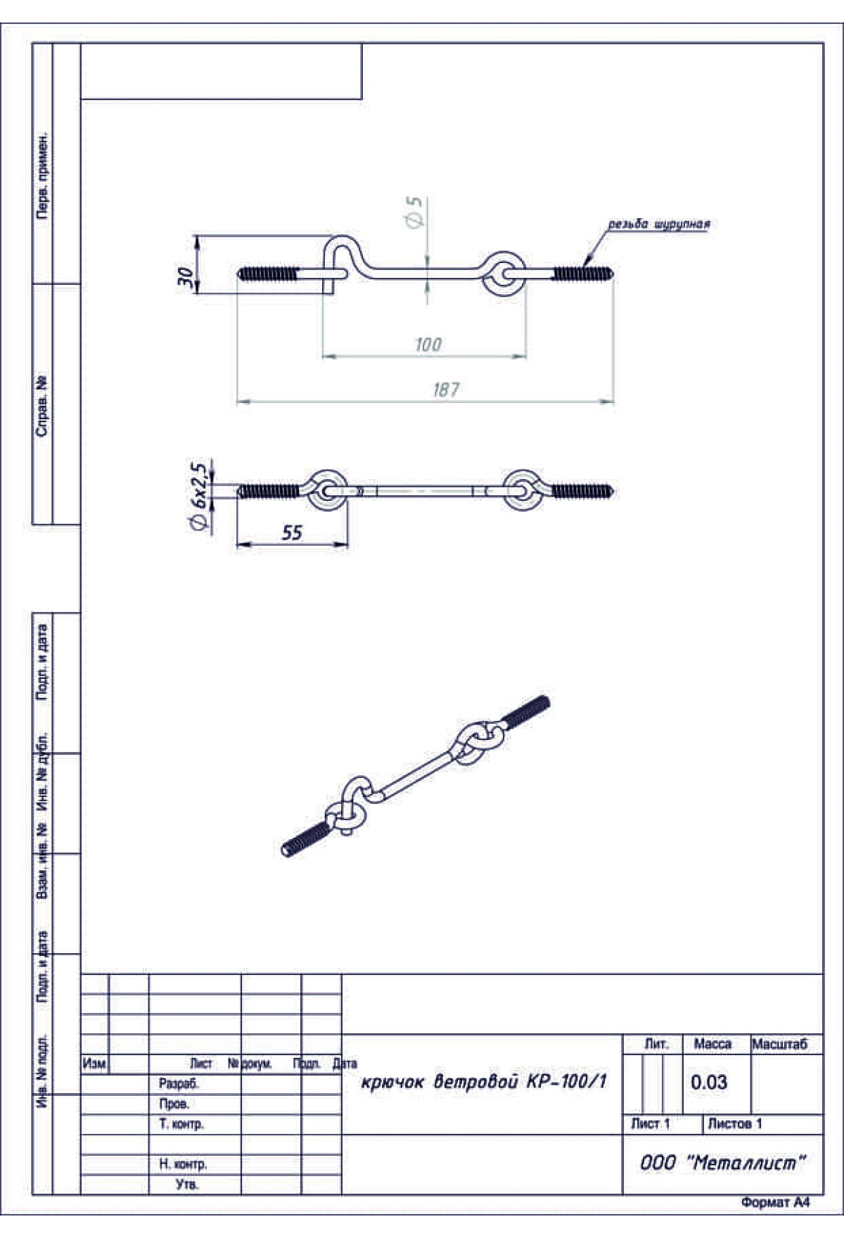 КРЮЧОК ВЕТРОВОЙ КР-100/1 (200 шт.) от 19.26 руб с доставкой в интернет-магазине завода «Металлист». Качественная продукция. Выгодные цены. Продукция от производителя. 200 шт. в коробке