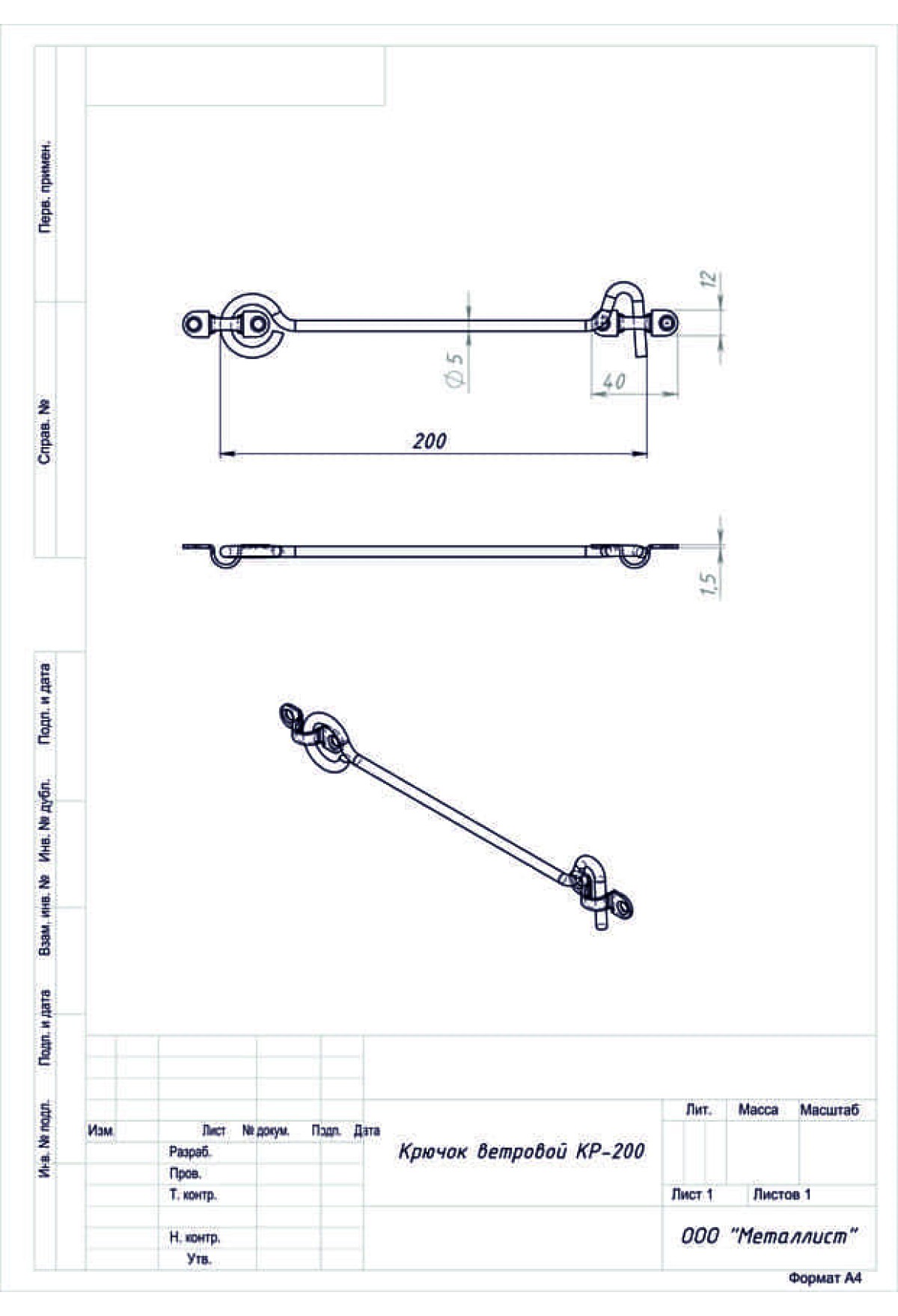КРЮЧОК ВЕТРОВОЙ КР-200 (100 шт.) от 24.02 руб с доставкой в интернет-магазине завода «Металлист». Качественная продукция. Выгодные цены. Продукция от производителя. 100 шт. в коробке