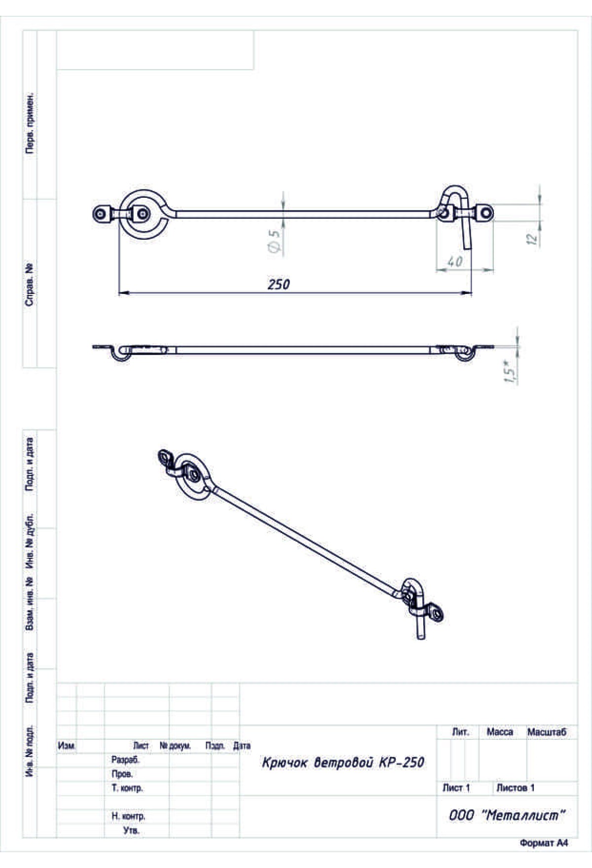 КРЮЧОК ВЕТРОВОЙ КР-250 (100 шт.) от 26.94 руб с доставкой в интернет-магазине завода «Металлист». Качественная продукция. Выгодные цены. Продукция от производителя. 100 шт. в коробке
