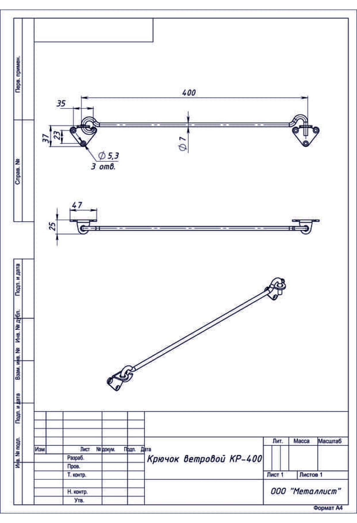 КРЮЧОК ВЕТРОВОЙ КР-400 (30 шт.) от 46.08 руб с доставкой в интернет-магазине завода «Металлист». Качественная продукция. Выгодные цены. Продукция от производителя. 30 шт. в коробке