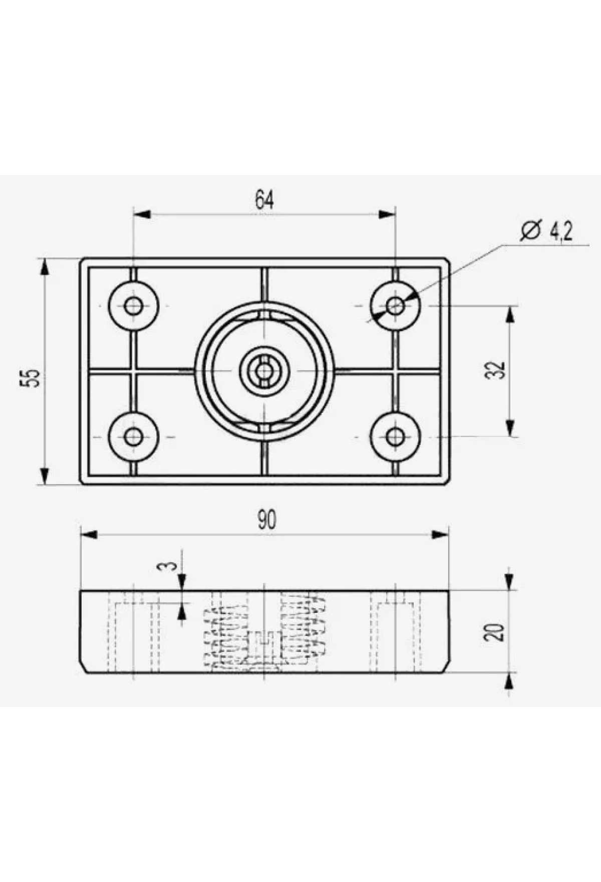 Технические характеристики Опора мебельная регулируемая прямоугольная 20*54*90мм матовый хром