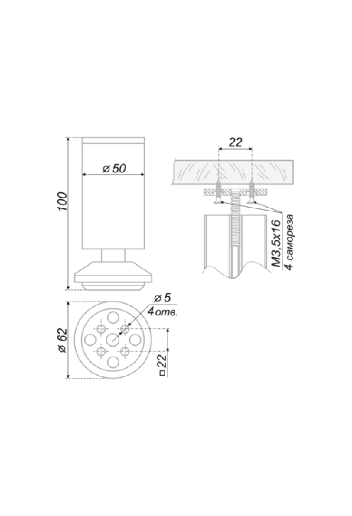 Технические характеристики Опора мебельная регулируемая цилиндрическая 100*50мм хром N302CP/CР.1 Boyard