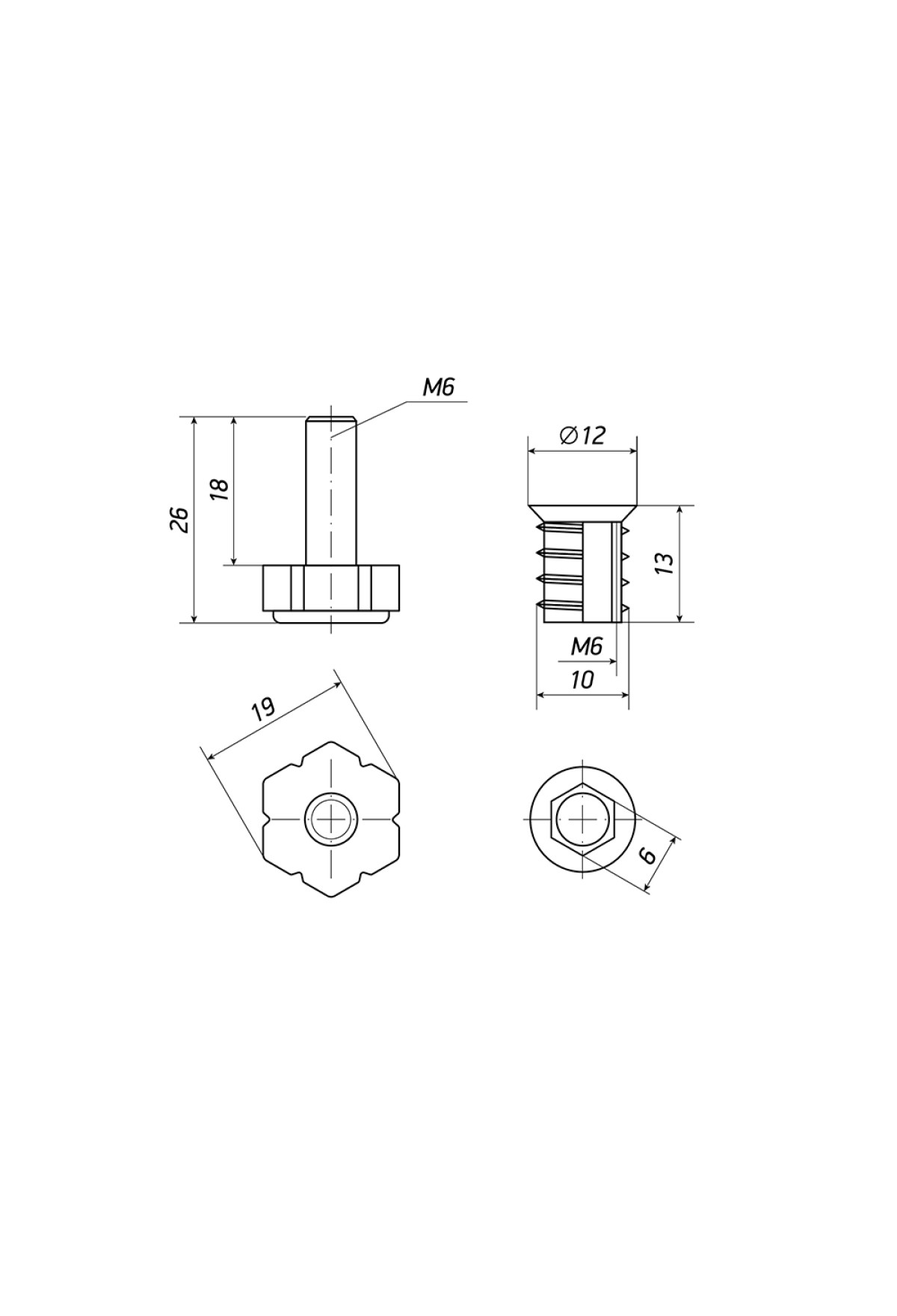 Технические характеристики Опора мебельная регулируемая винтовая с втулкой М6 под прикручивание