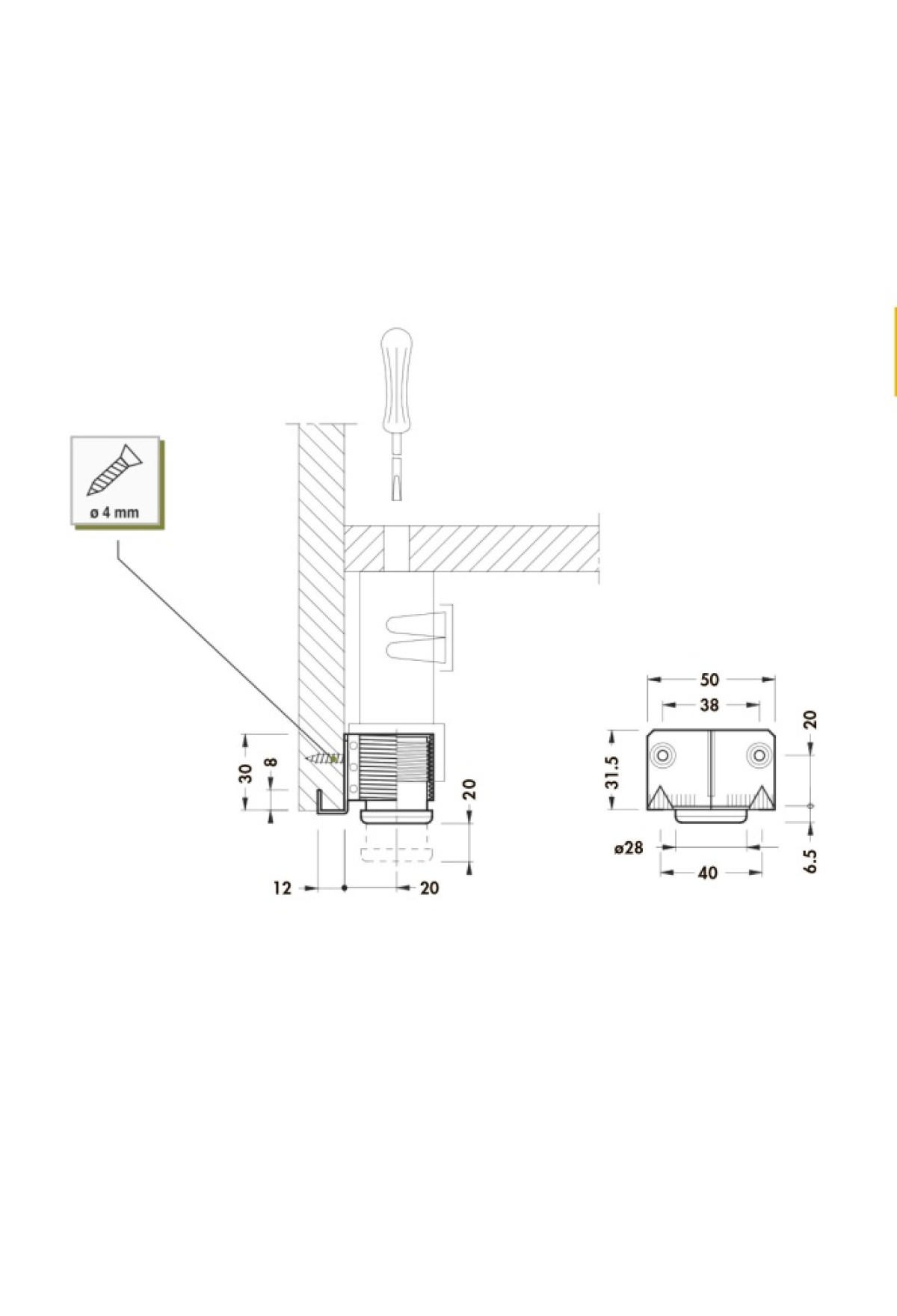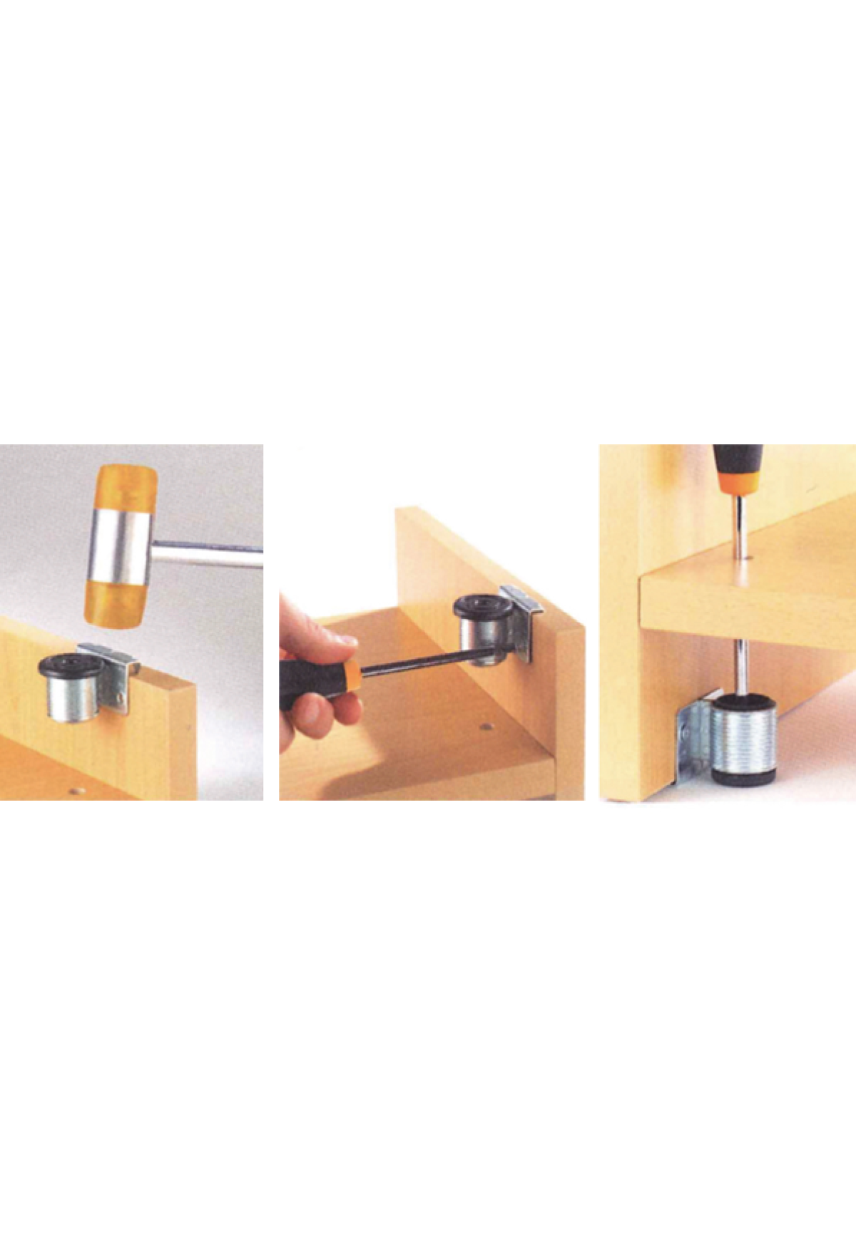 Простой монтаж - опора забивается в торец боковины шкафа и фиксируется на 2 шурупа.