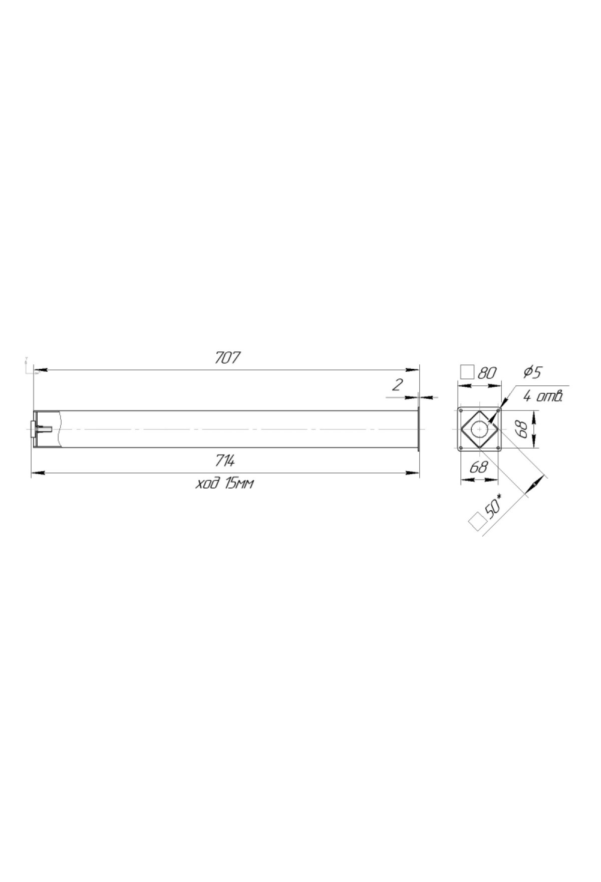 Опора 50х50х720 с приварным фланцем регулируемая