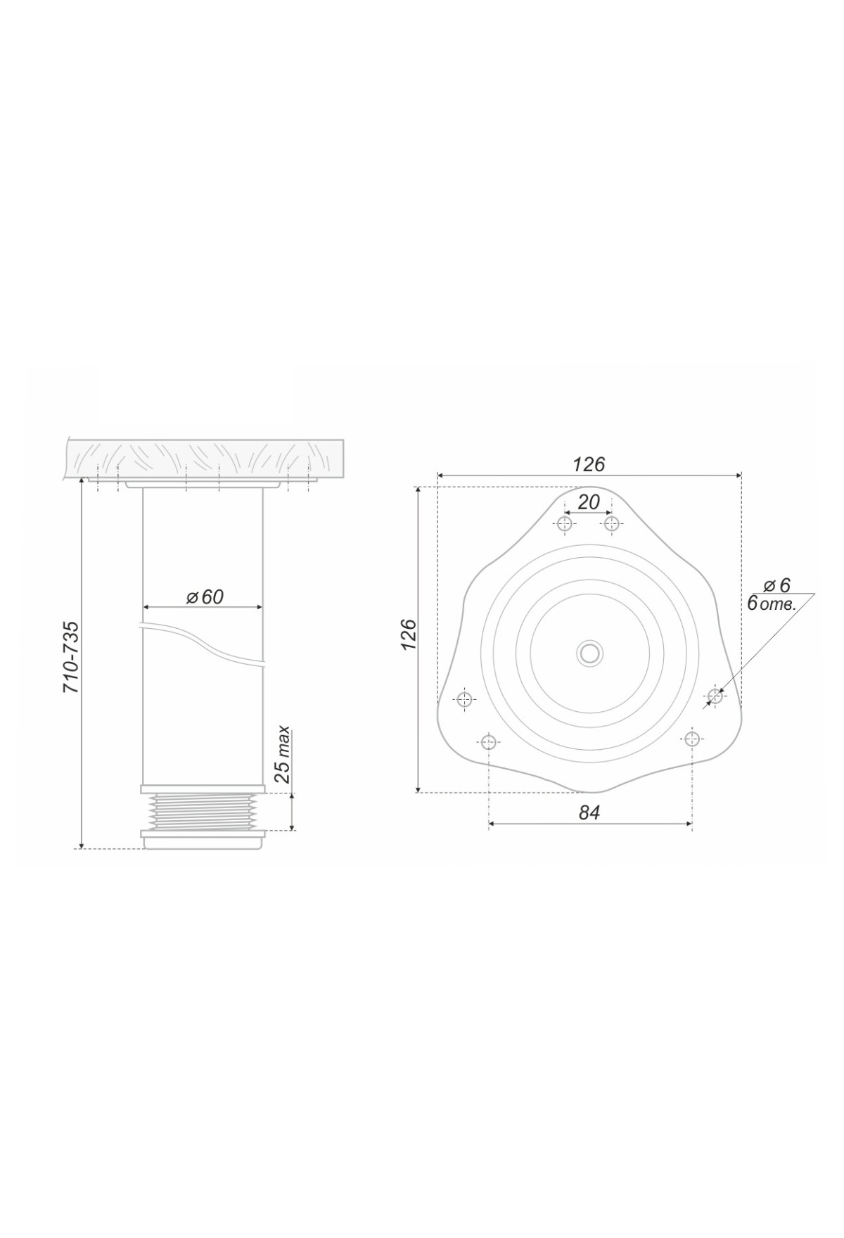труба, подпятник пластиковый "Пятак", металическое крепление к столешнице.
