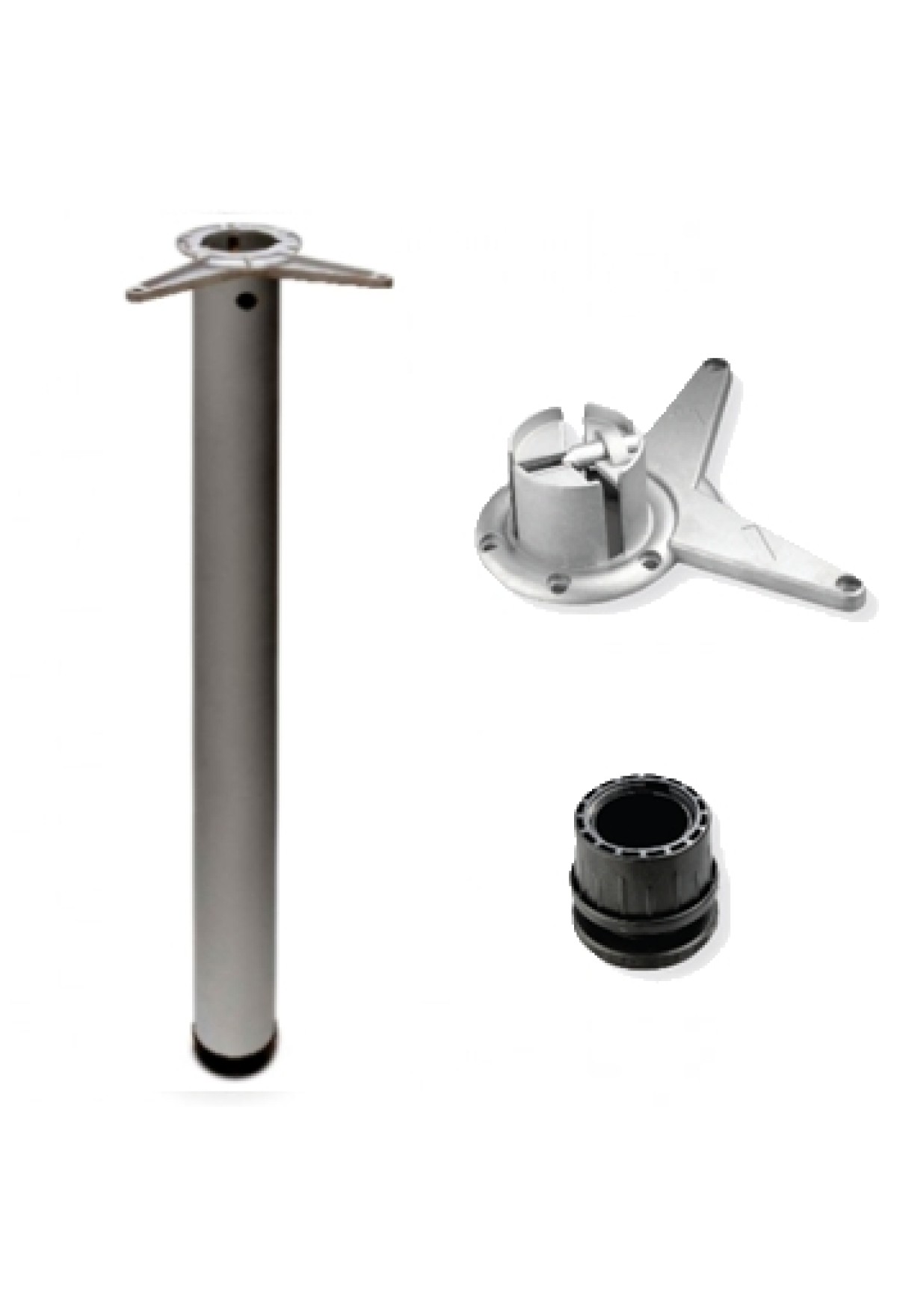 Нога состоит из трубной части, крепежа к столешнице и регулируемой пятки.
