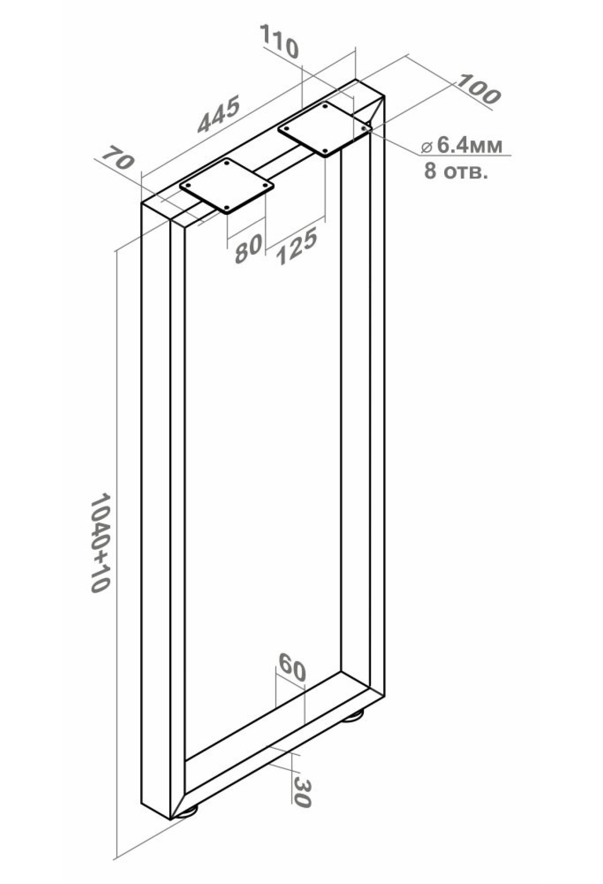 Технические характеристики Опора мебельная для столов П-образная 445х1040мм черная усиленная
