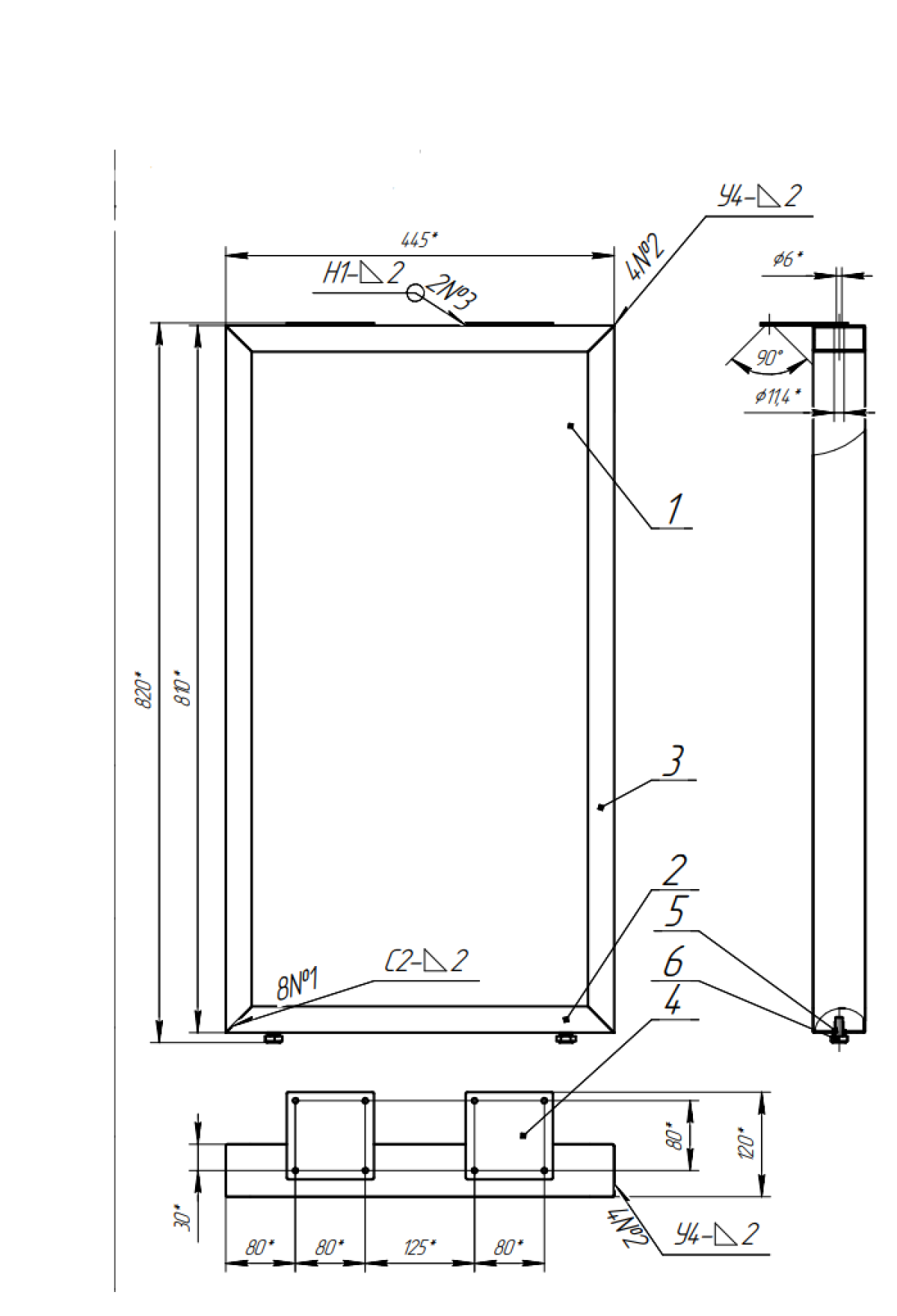 Технические характеристики Опора мебельная для столов П-образная 445х820мм черная усиленная