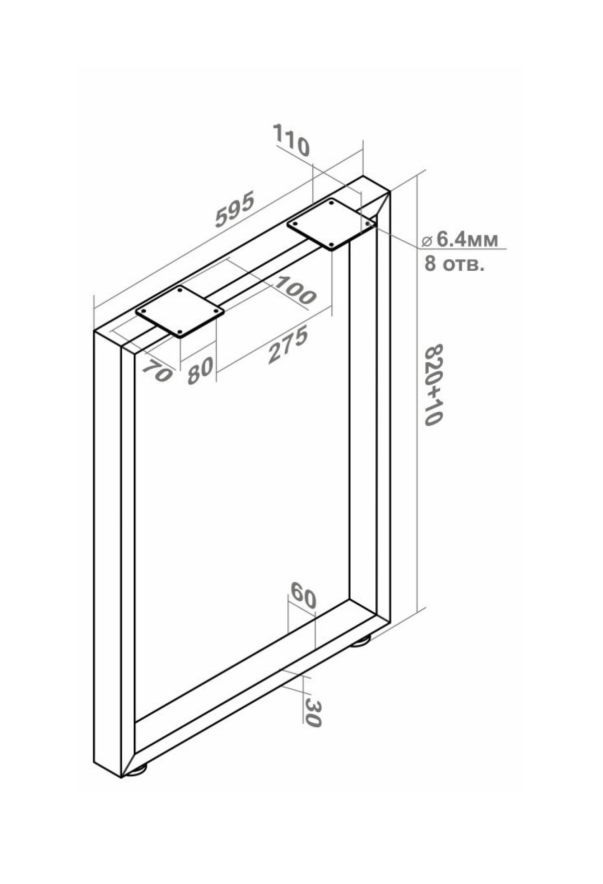 Технические характеристики Опора мебельная для столов П-образная 595х820мм черная усиленная
