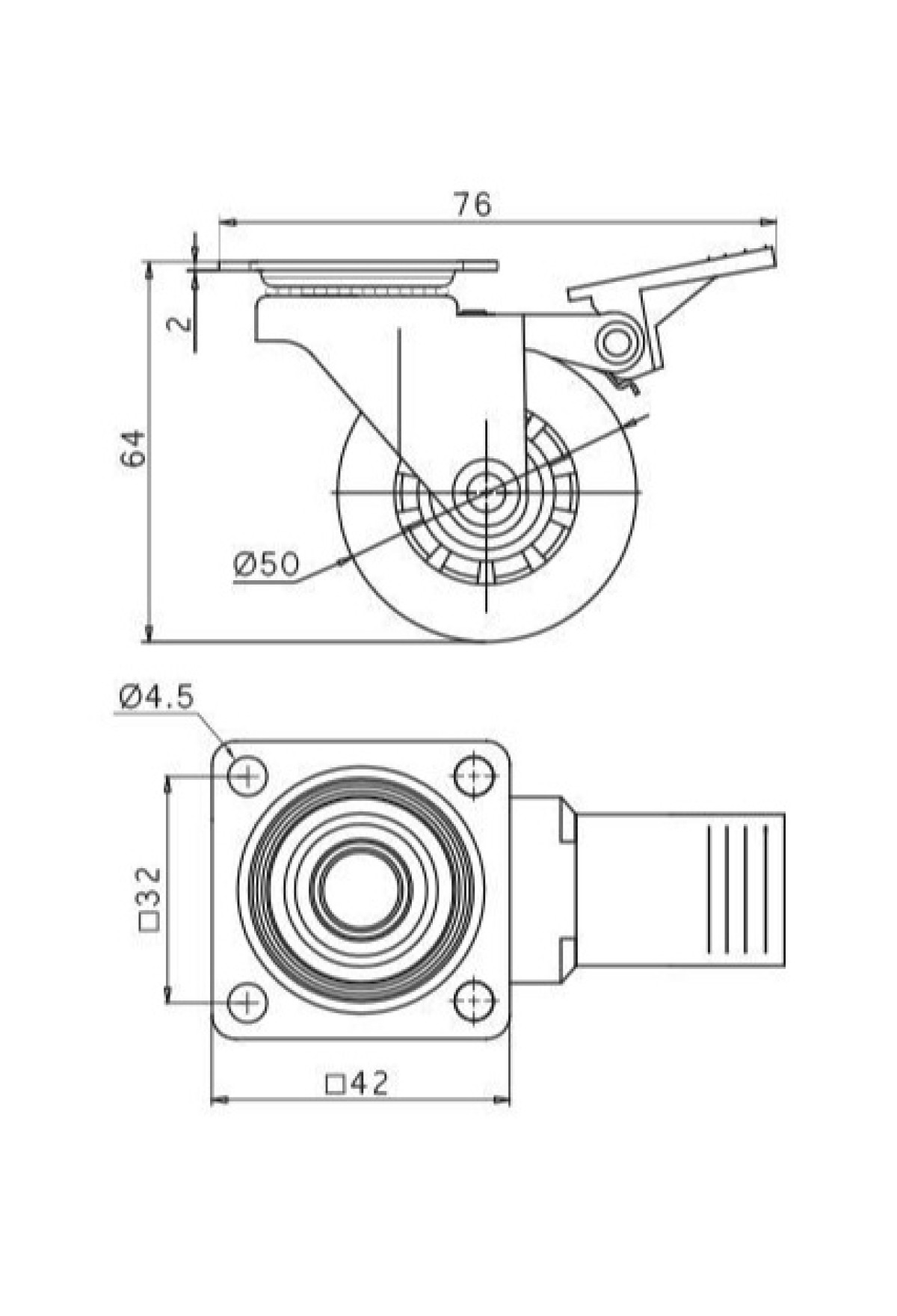 Технические характеристики опора колесная фланцевая 50мм, со стопором, прозрачное, Brazylia, GTV (100шт)/KM-RD-50-CF