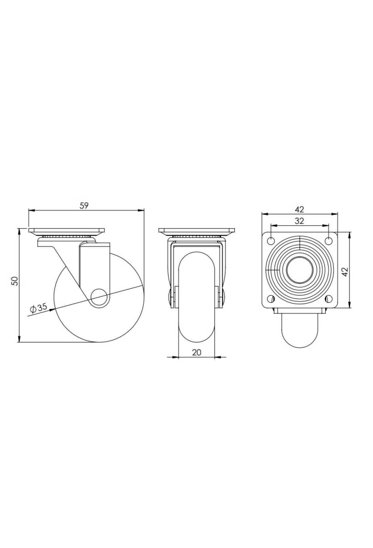Технические характеристики Опора колесная поворотная 35мм до 25кг прозрачное колесо