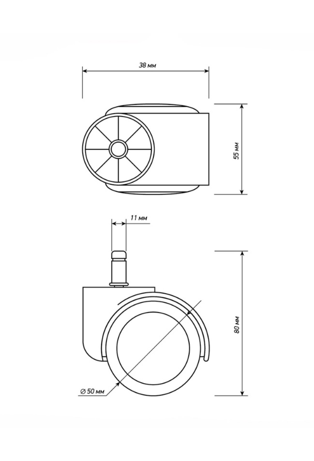 Технические характеристики Опора колесная поворотная 50мм на штыре без резьбы M11 черно-серая FМА-5011