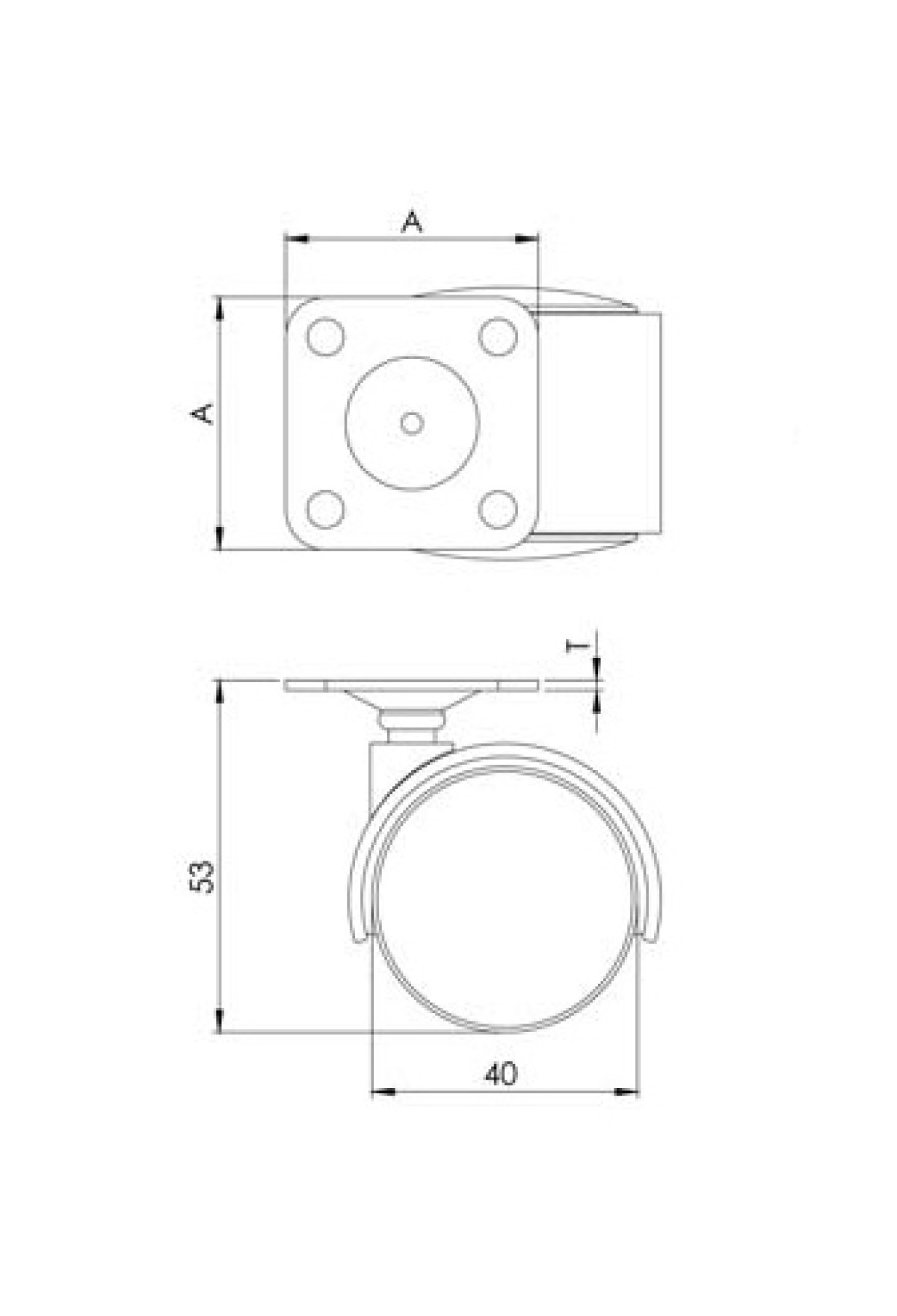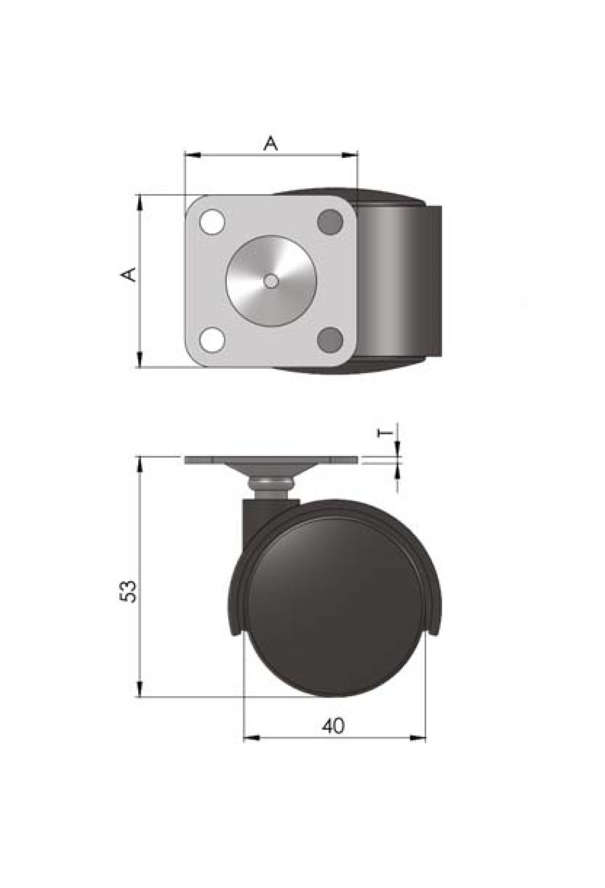 Технические характеристики Опора колесная поворотная с фланецем D40мм черная
