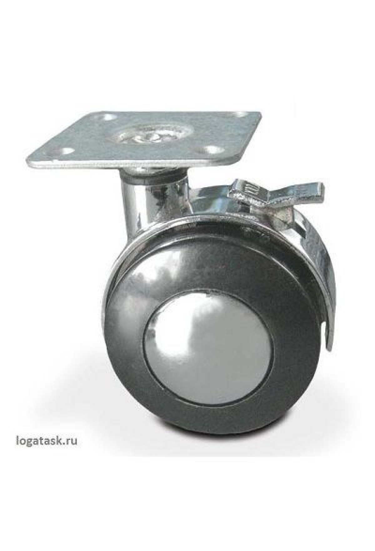 Опора колесная поворотная усиленная со стопором 50мм черный/хром TZPB50