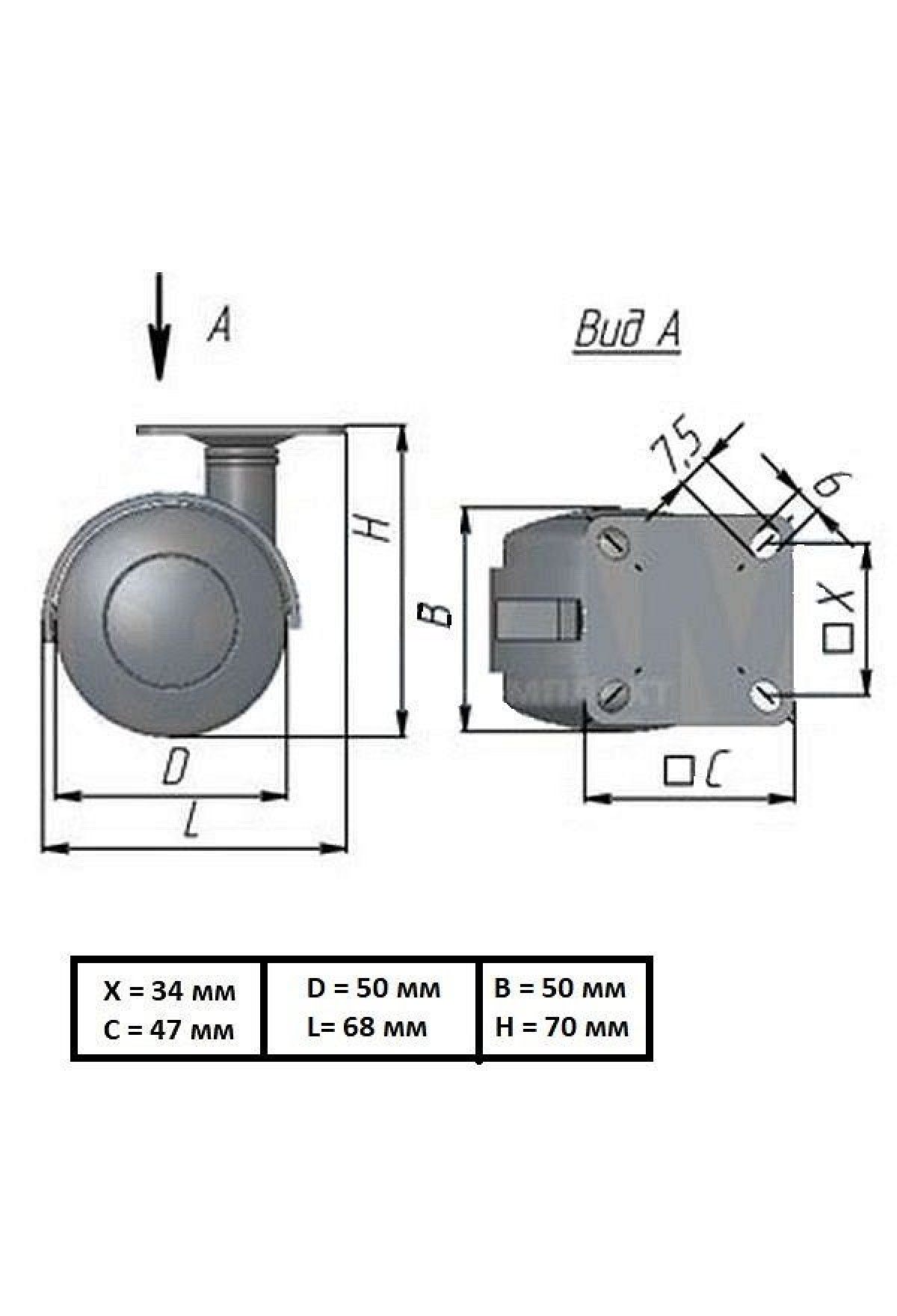 Тип опоры (Опоры мебельные) | Опора колесная |