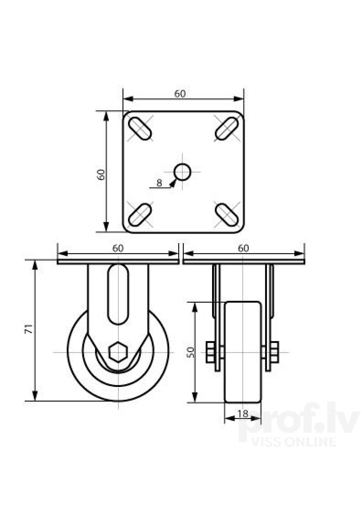 Технические характеристики Опора колесная прямоход 50мм серый 663.07.910 Hafele