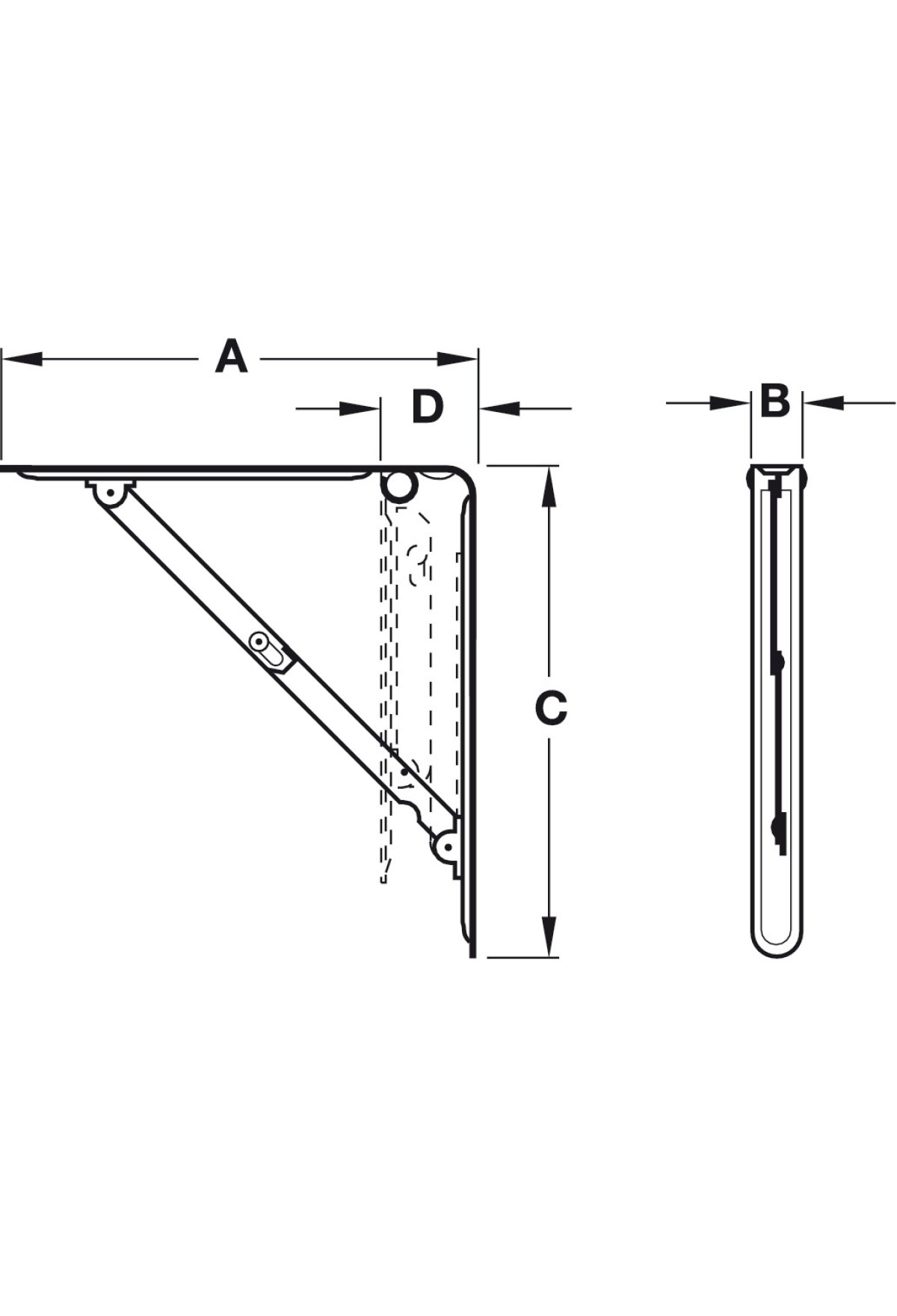 Технические характеристики Консоль складная 430мм на 60кг сталь белая 287.40.742 Hafele