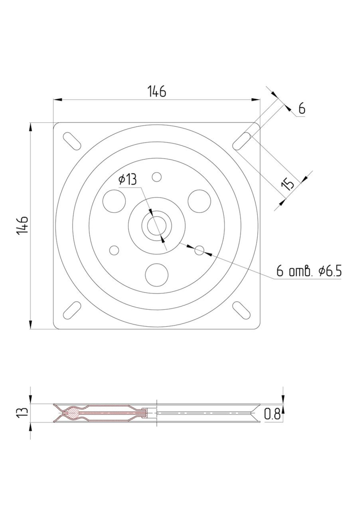Технические характеристики Площадка поворотная под TV 150*150мм, черный