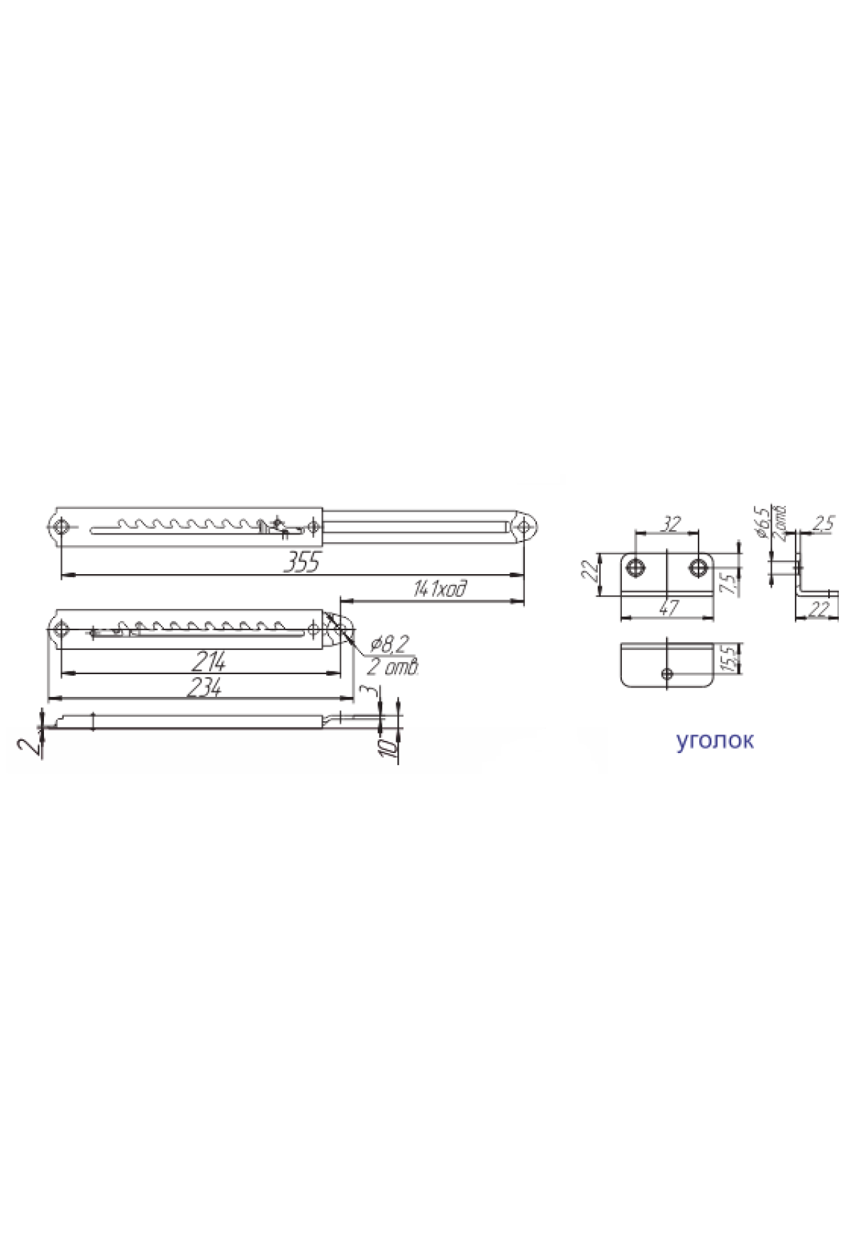 Длина механизма с уголком = механизм без уголков + 15,5 мм.