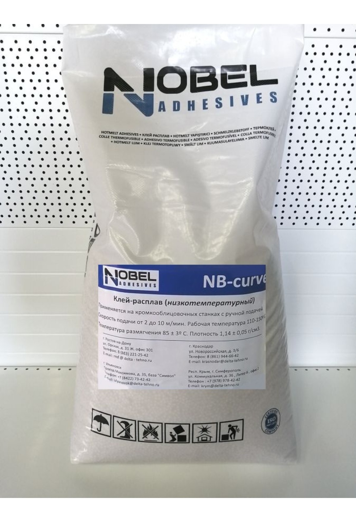 Клей-расплав Nobel NB-Curve низкотемпературный клей со скоростью подачи от 2 м/мин, применяется на кромкооблицовочных станках с ручной подачей. Применяется в мебельной промышленности для приклеивания кромочного материалы из шпона, бумаг, меламина, пластика АБС и ПВХ .