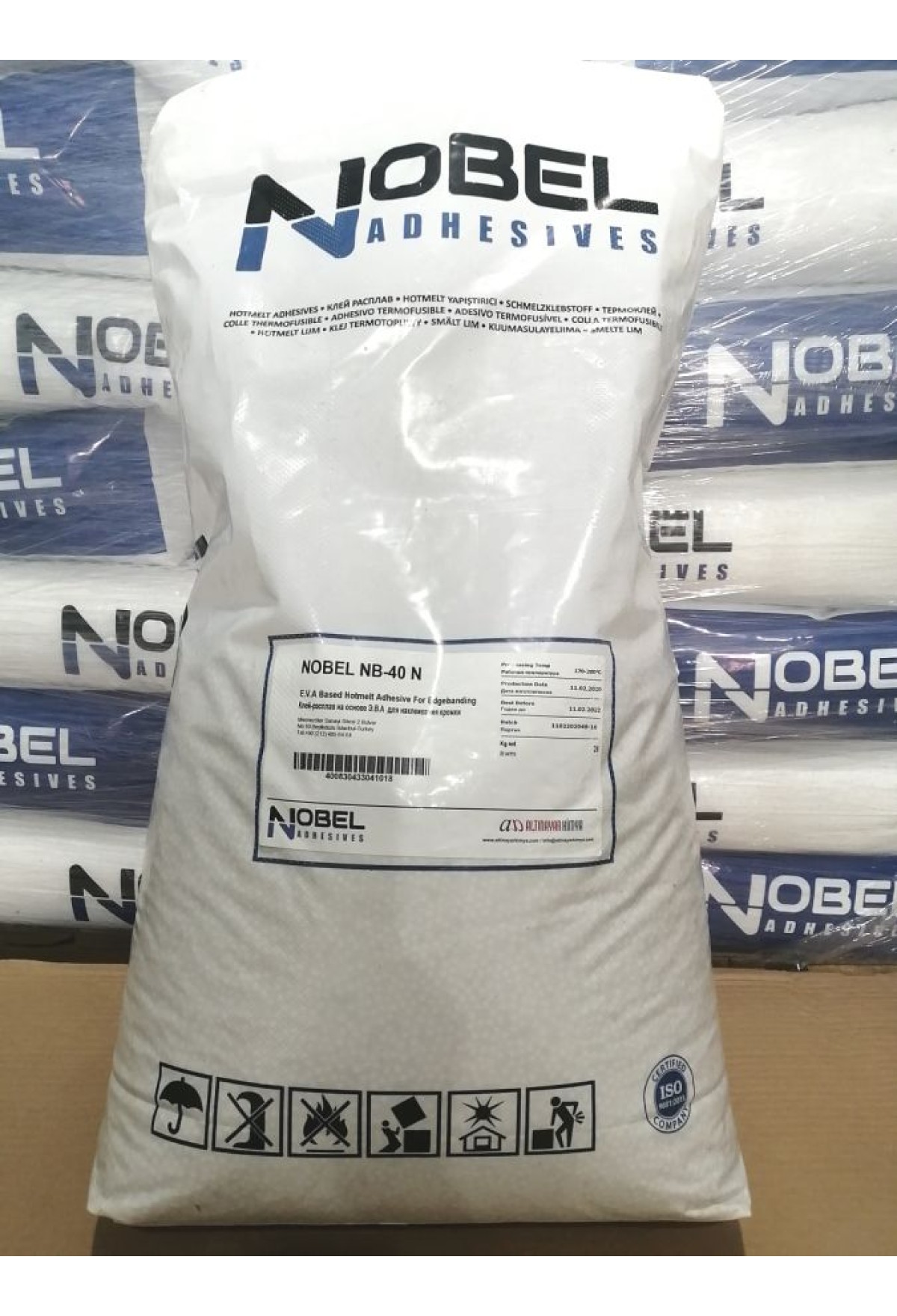 Клей-расплав Nobel NB-40 (высокотемпературный) для приклеивания кромочного материалы из шпона, бумаг, меламина, пластика АБС и ПВХ.