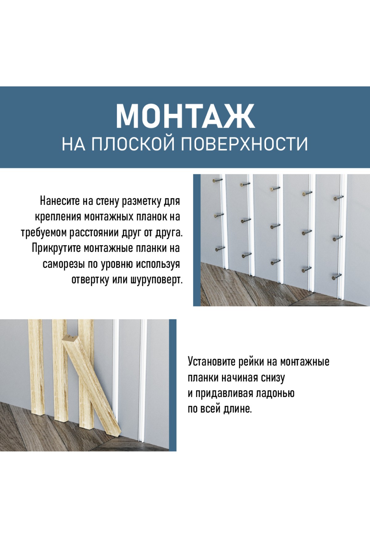 Имея небольшой вес, рейки легко фиксируются на стене, нише или потолке при помощи клея или шурупов.