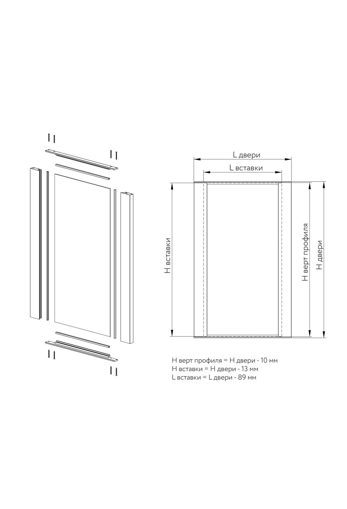 Алюминиевый профиль используется при изготовлении распашных фасадов и фасадов с подъемным механизмом. Широкий вертикальный рамочный профиль с интегрированной ручкой - идеальное решение для мебели без видимой лицевой фурнитуры. Фасады в рамке из алюминия не деформируются со временем, долговечны и не подвержены воздействию повышенной влажности. Ширина лицевой части профиля 60 мм. Толщина фасада 22 мм. Мебельный фасад легко собирается из вертикального и 2-х горизонтальных рамочных профилей саморезами черного цвета, не требует реза профиля под 90 градусов и сложных присадок. Для изготовления одного фасада необходимо 8 штук саморезов. Используется наполнение толщиной 4 мм. Высота двери до 2600 мм, вес двери до 30 кг. Возможно использовать классические петли с чашкой 35 мм.