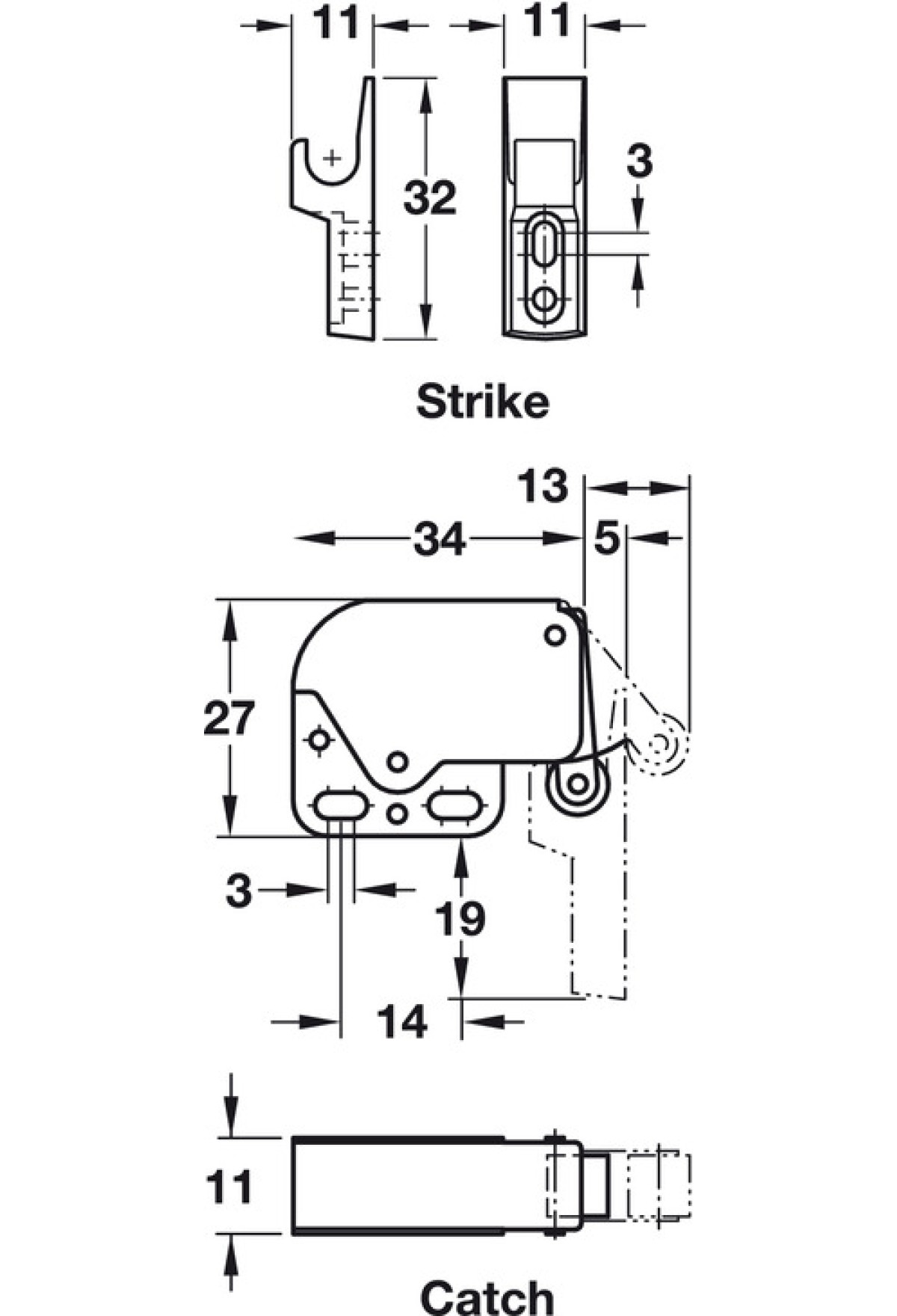 Технические характеристики Ответная часть мебельной защелки Mini Latch 245.54.090 Hafele