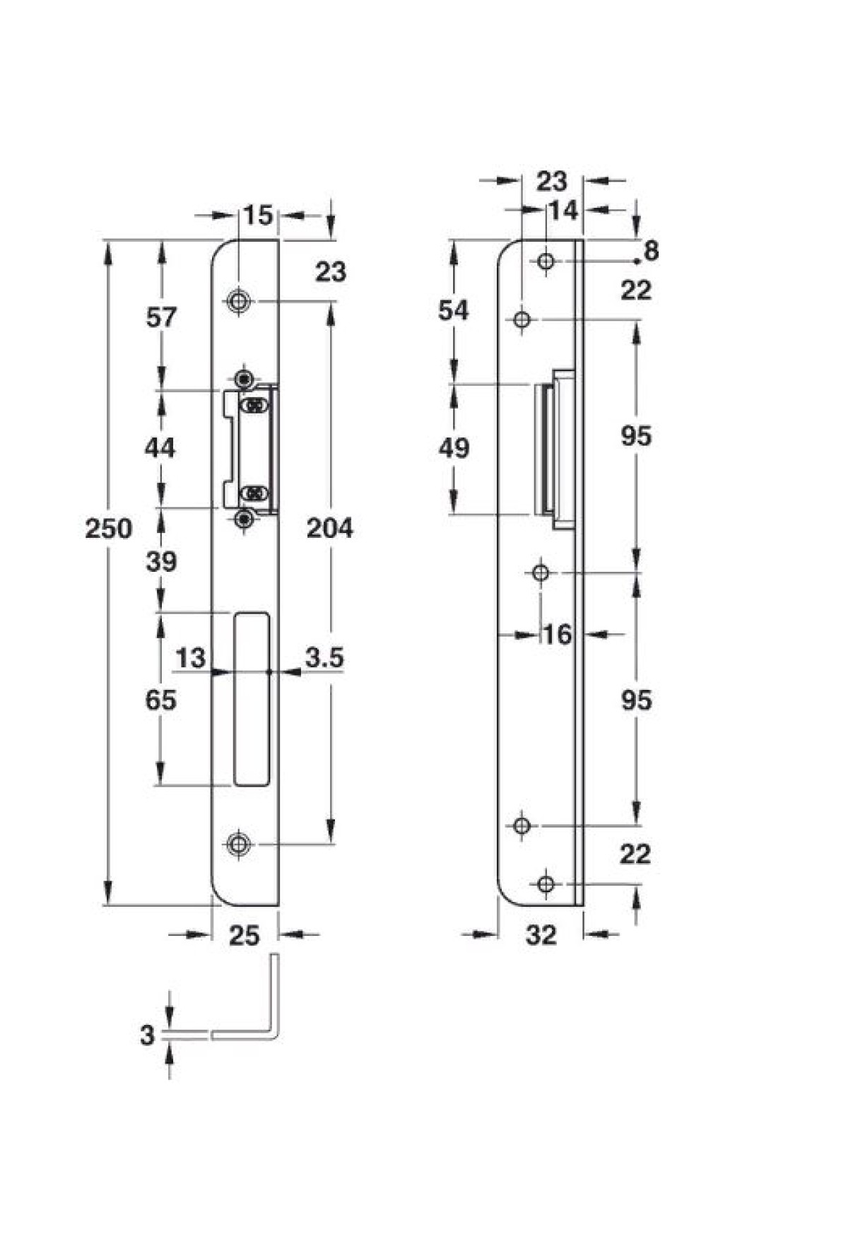 Технические характеристики угловая запорная пластина KFV 250мм со сменным элементом/911.39.283