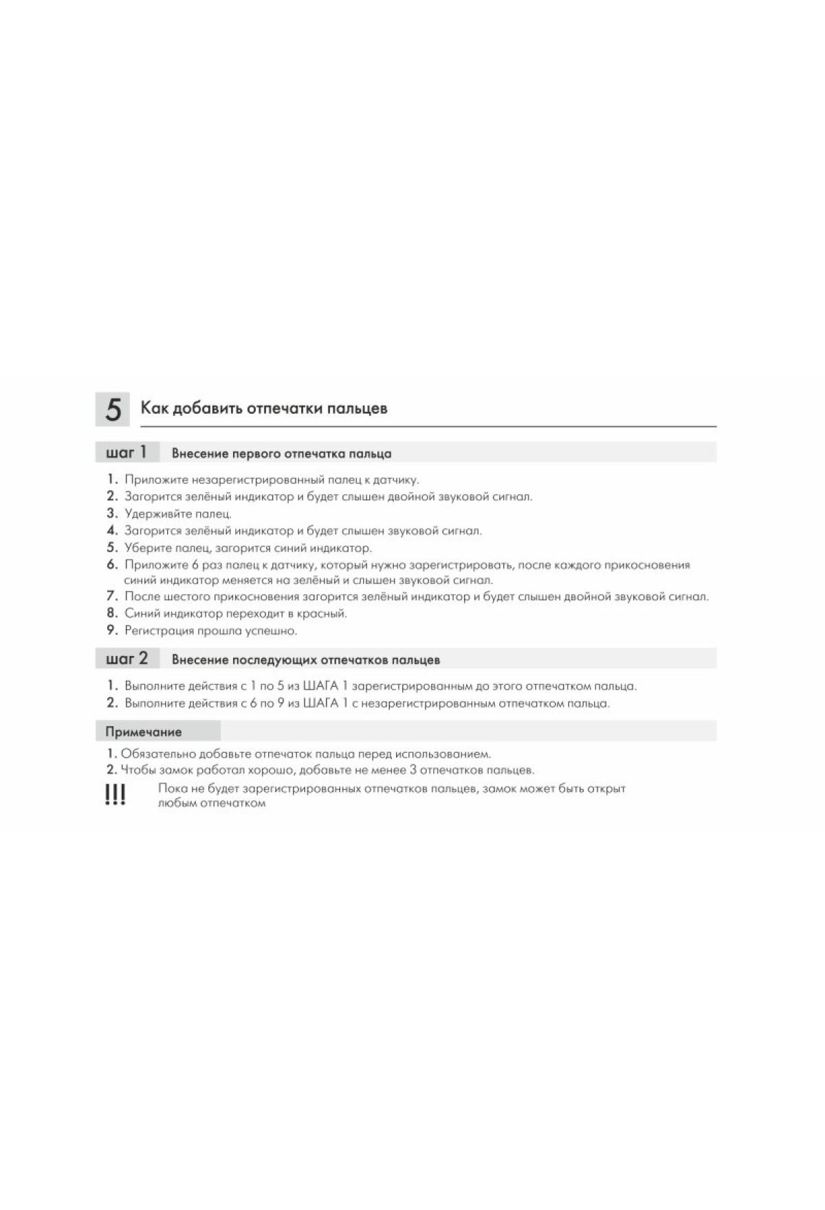 Модель обладает высокочувствительным быстро реагирующим биометрическим датчиком. К замку можно настроить до 20 отпечатков пальцев. До момента настройки замок может открыть любой отпечаток.