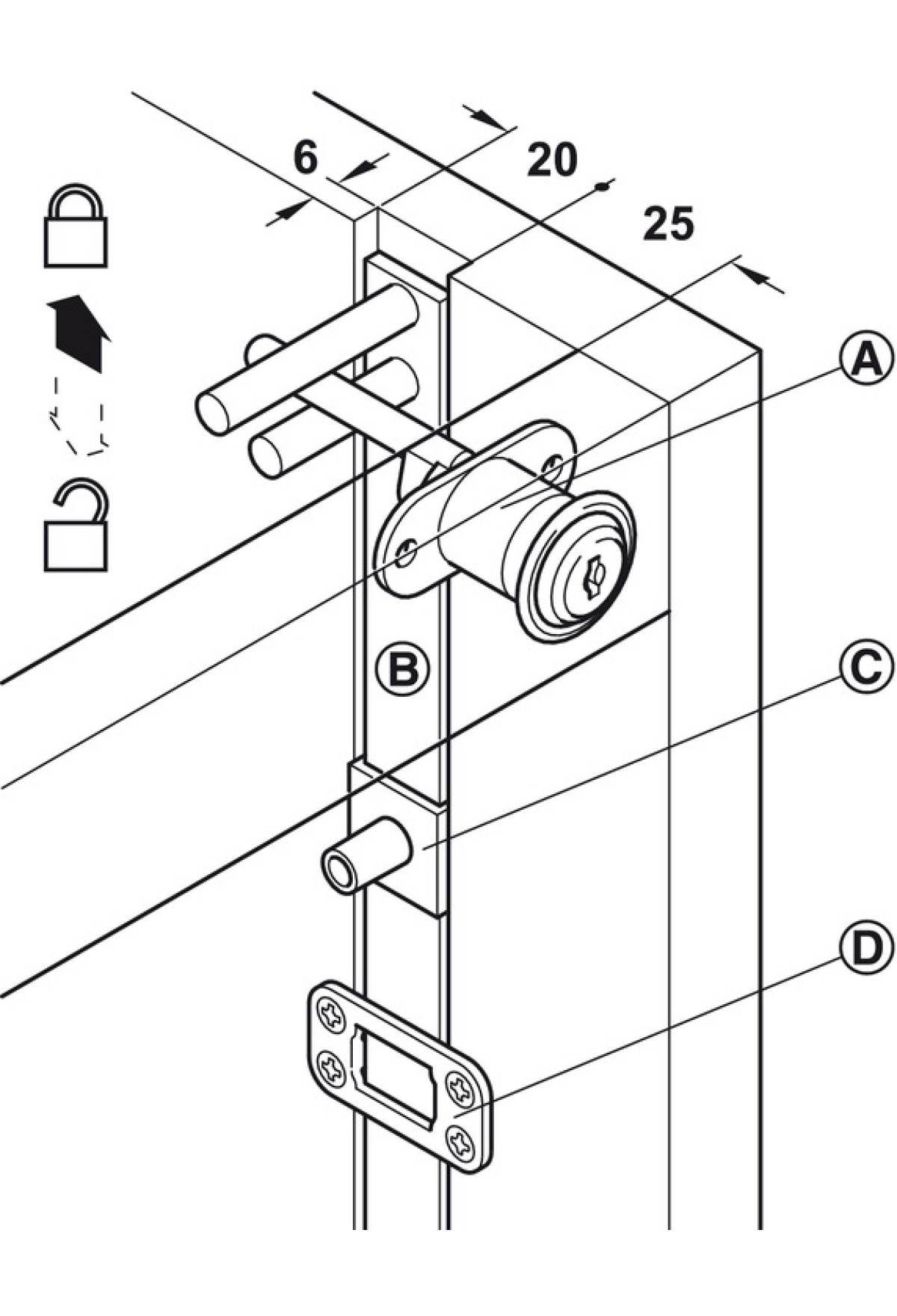 Технические характеристики Замок центральный поворотный 234.98.600 Hafele