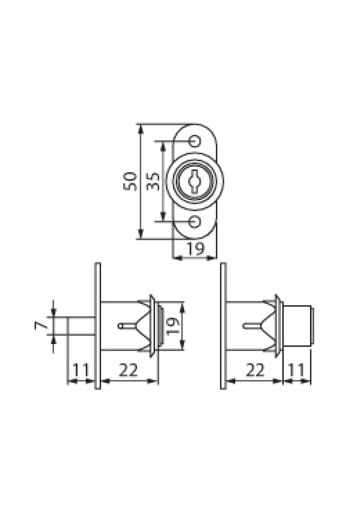Технические характеристики Замок врезной для дверок шкафа-купе