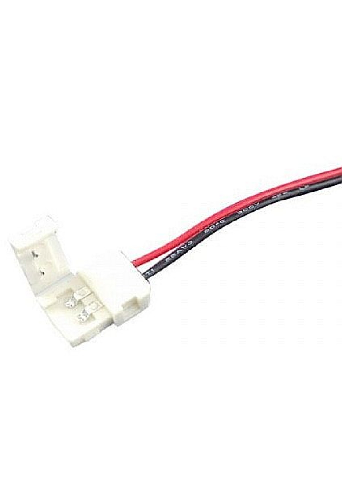 Коннектор для светодиодной ленты 3528 8 мм с проводом и разъемом на одной стороне предназначен для быстрого подключения монохромной светодиодной ленты к блоку питания или диммеру без использования пайки.