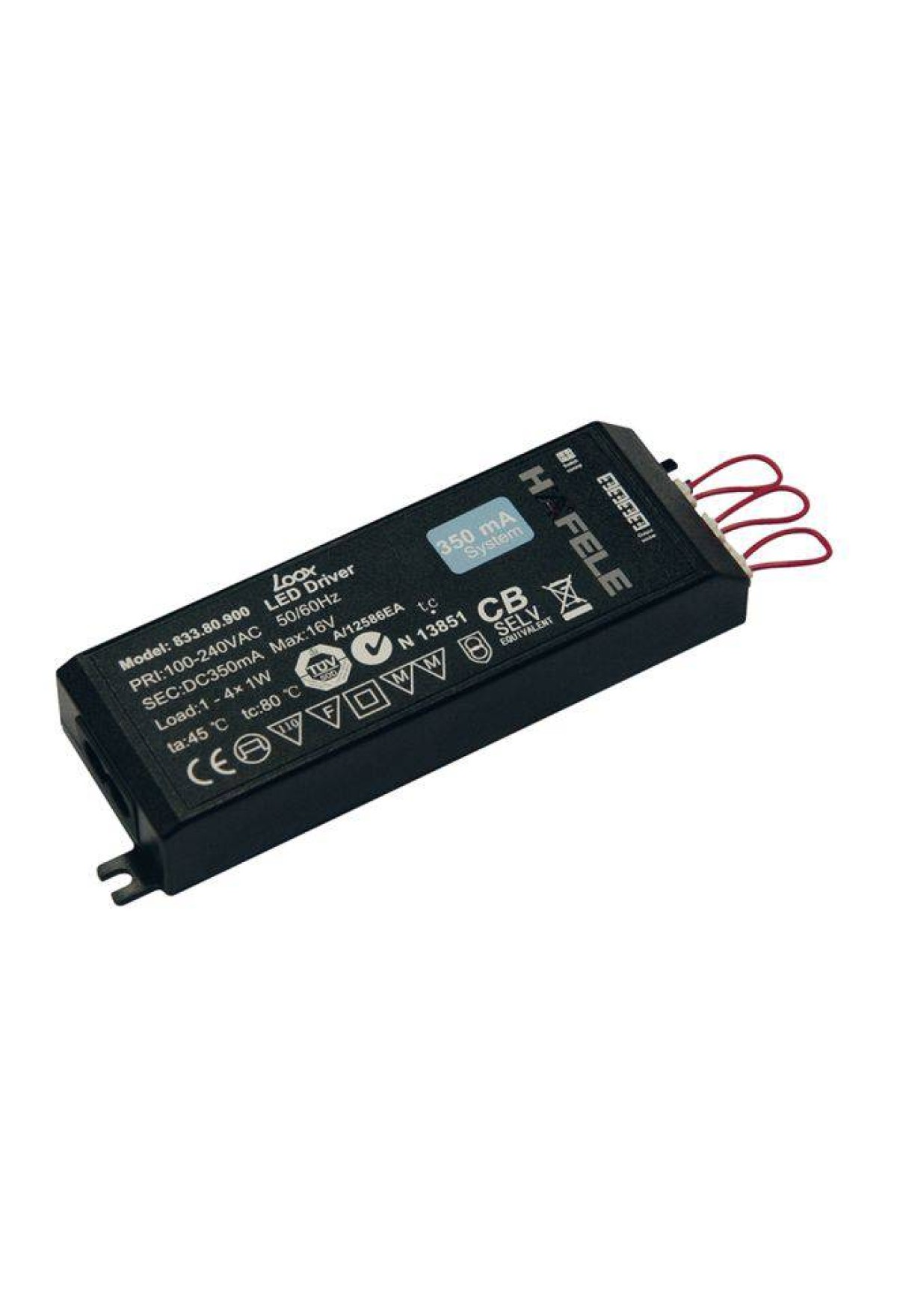 • Драйвер для светодиодных лент и светильников LOOX 350mA/1-4Вт пластиковый черный 833.80.900 Hafele