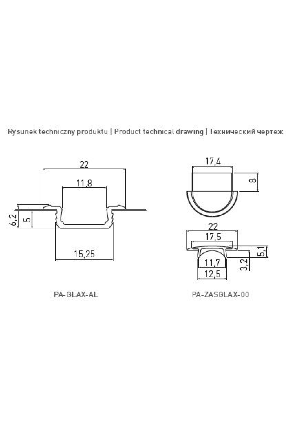 Технические характеристики Заглушка врезного профиля 2206 GLAX для светодиодной ленты черный матовый PA-ZASGLAX-20M GTV