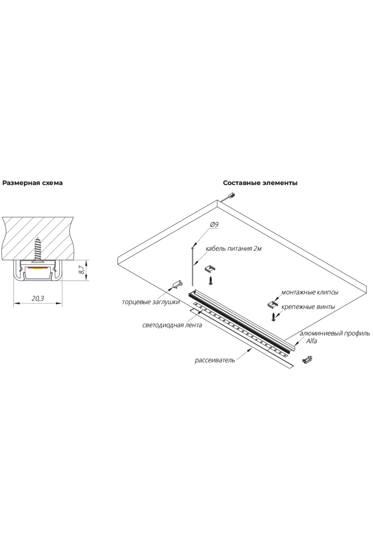 Технические характеристики светильник ALFA Touch с датчиком касания, накладной, 2600мм, белый (альпина)/346.01.2600NW
