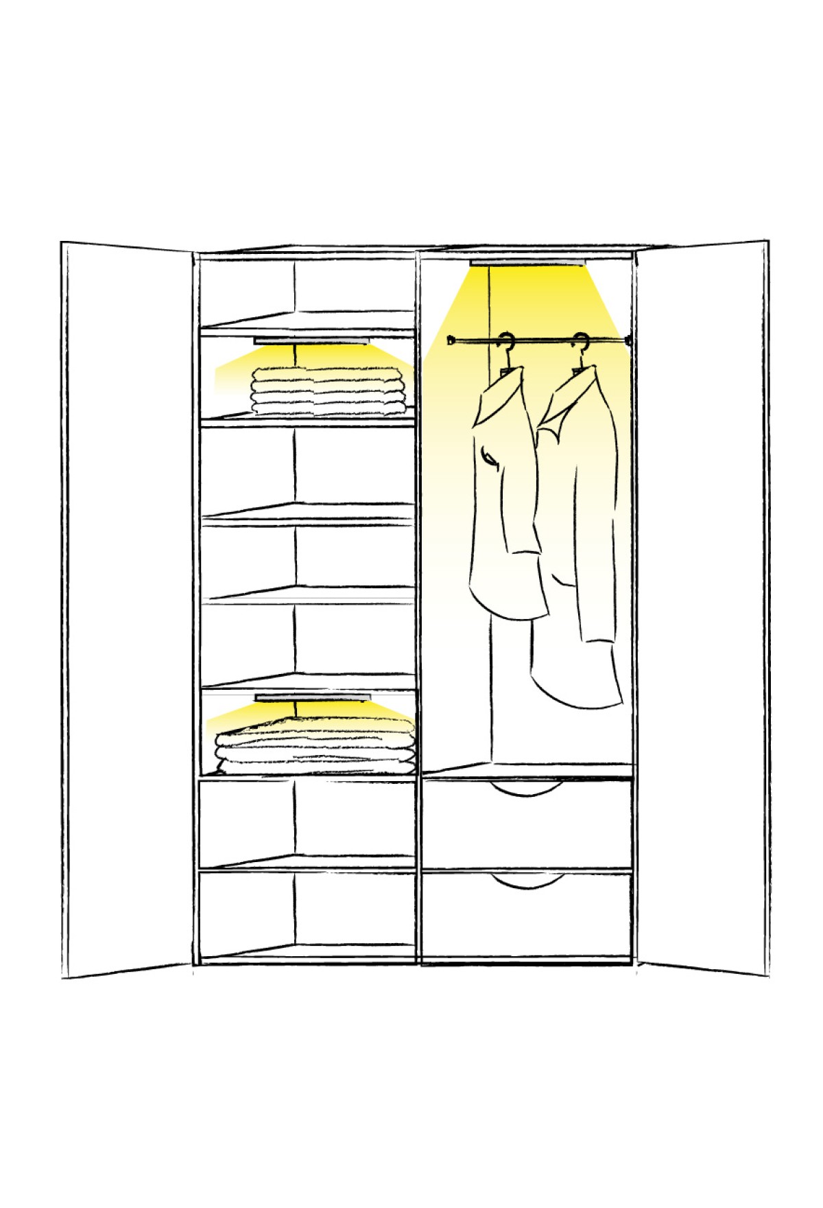 Светильник светодиодный ASTRA IFR используется в шкафу с распашными или раздвижными дверями, а также в гардеробной комнате. При движении двери или появлении человека в радиусе 3 метров датчик будет срабатывать на включение. При закрывании двери или отсутствии движения в течение 40 секунд светильник выключится. Если Вам нужна длительная подсветка, например, при наведении порядка в шкафу, просто выберите режим вкл. для непрерывного свечения.