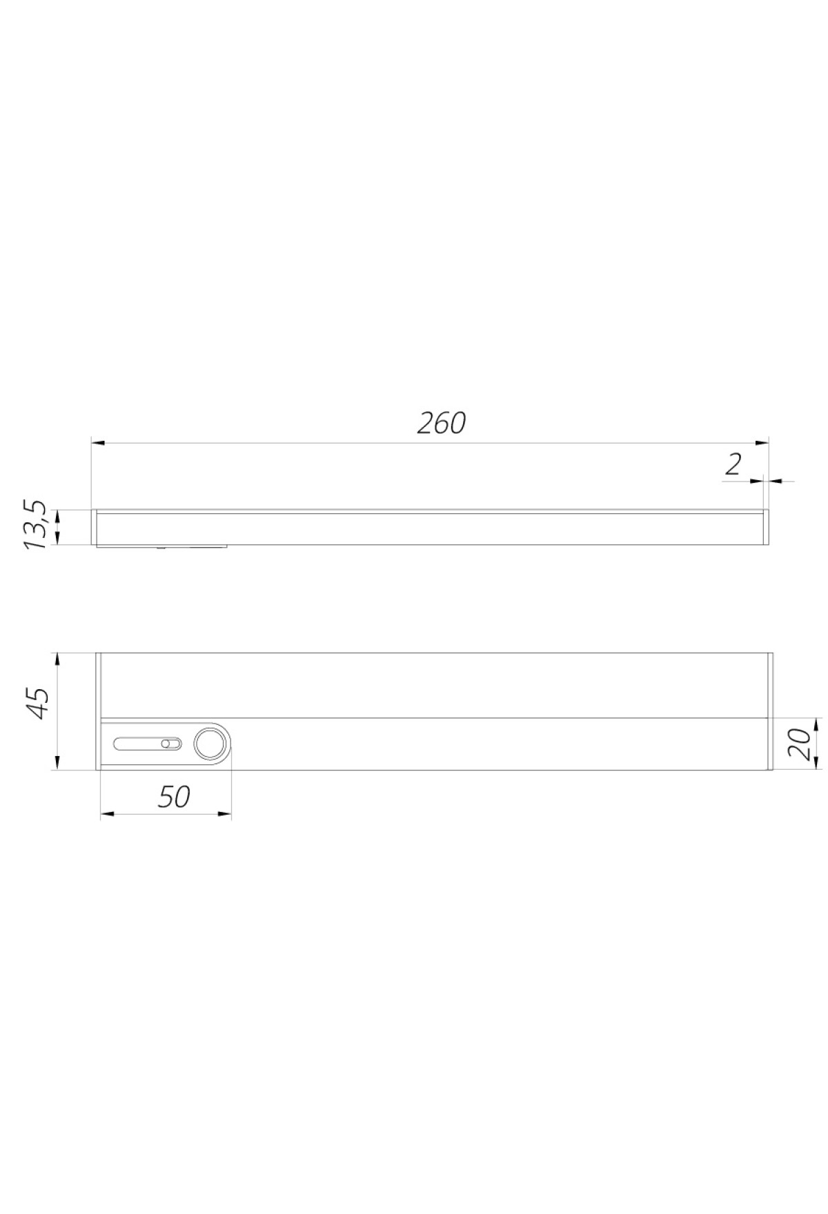 Размер светильника: 261*45*14мм