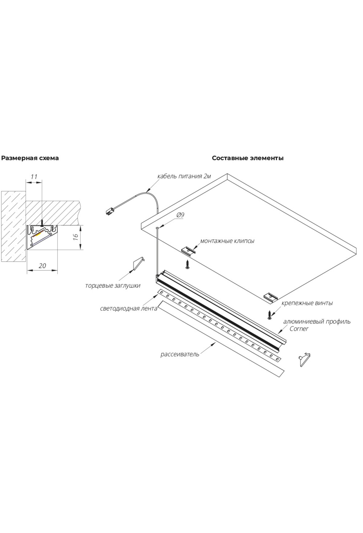 Примечание: при необходимости, светильник можно резать в нужный размер.