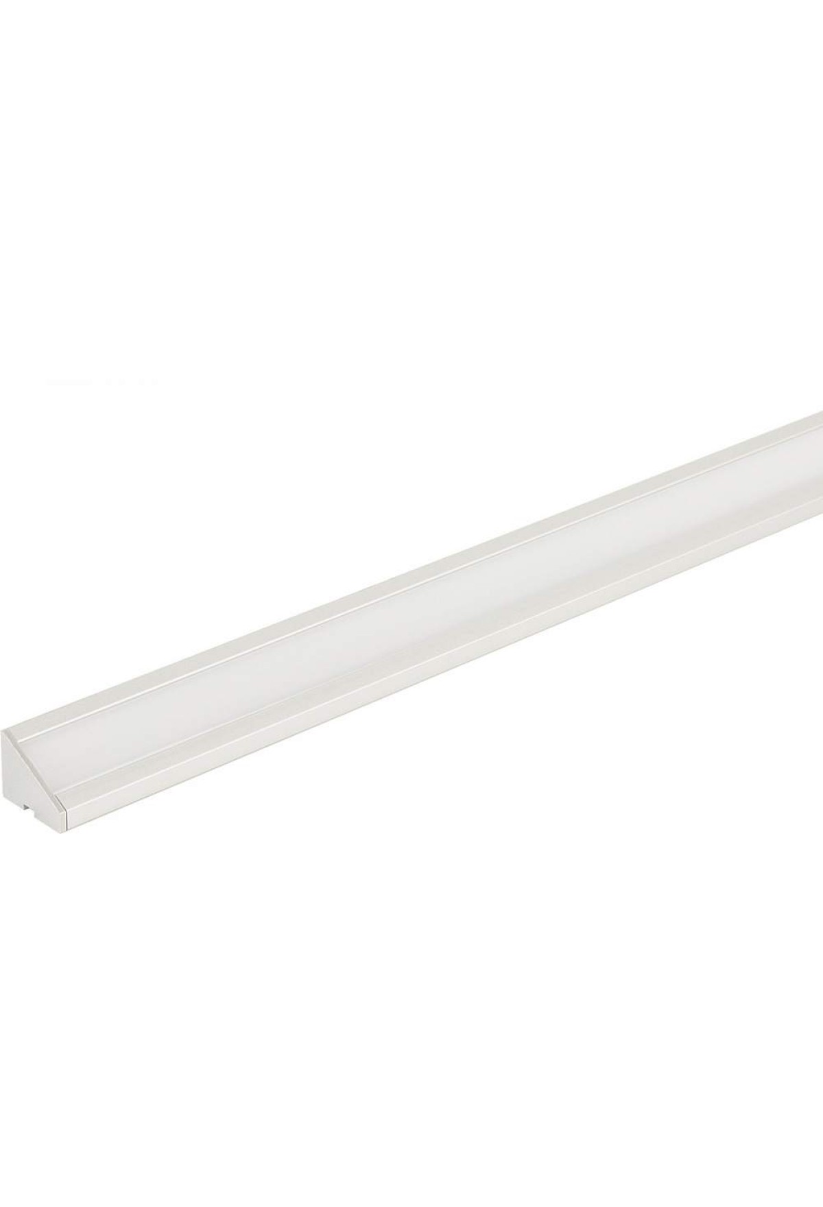 Светильник с наклонной проекцией луча выполнен в лаконичной стилистике. Отличное решение для подсветки рабочего места на кухне: свет падает непосредственно на столешницу и не слепит глаза. При установке вплотную к стене провод выводится вверх через специальный паз в торцевой заглушке. Очень простой накладной монтаж на скрытые клипсы. Сенсорный выключатель мягкого касания располагается за рассеивающим экраном с левой