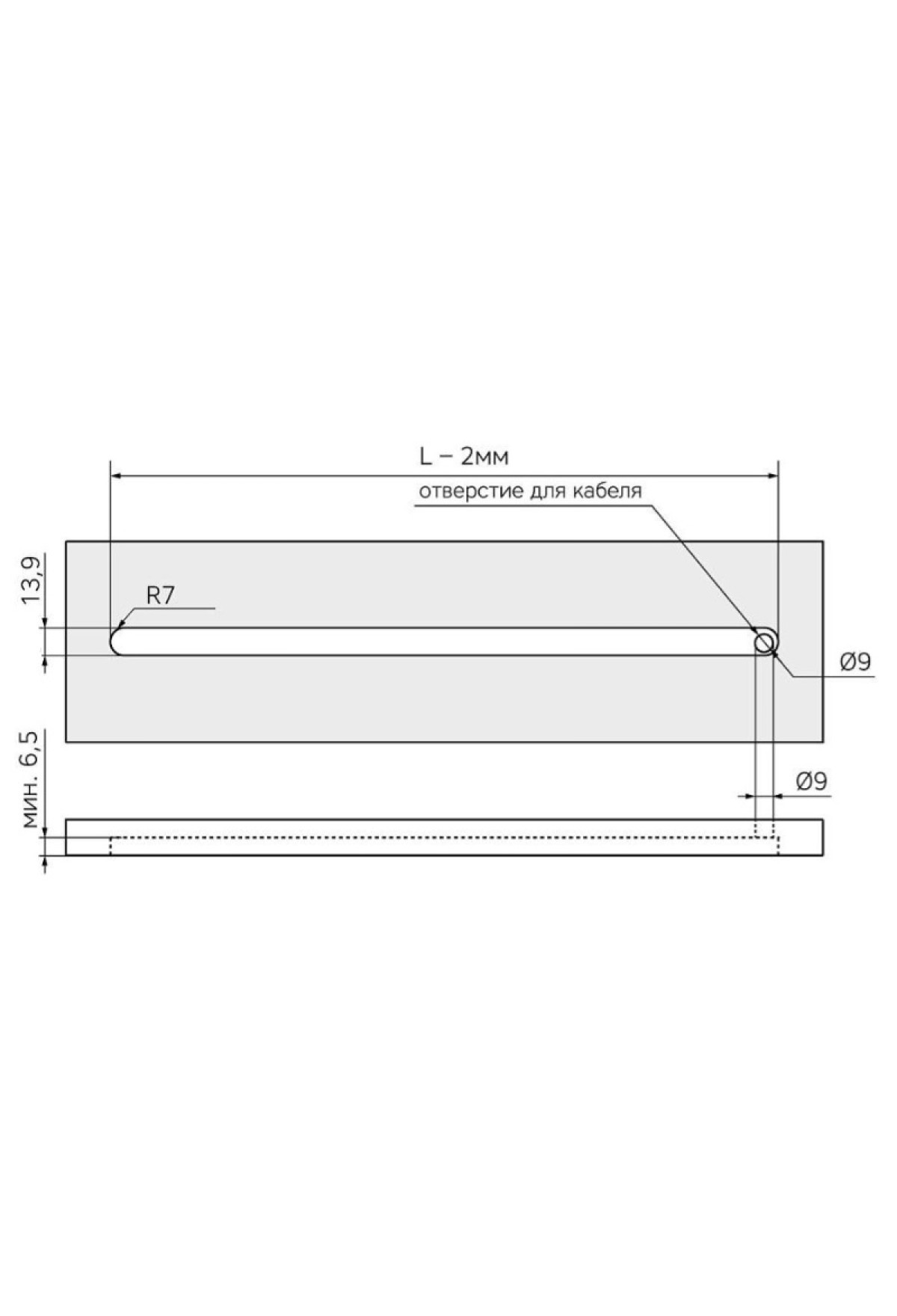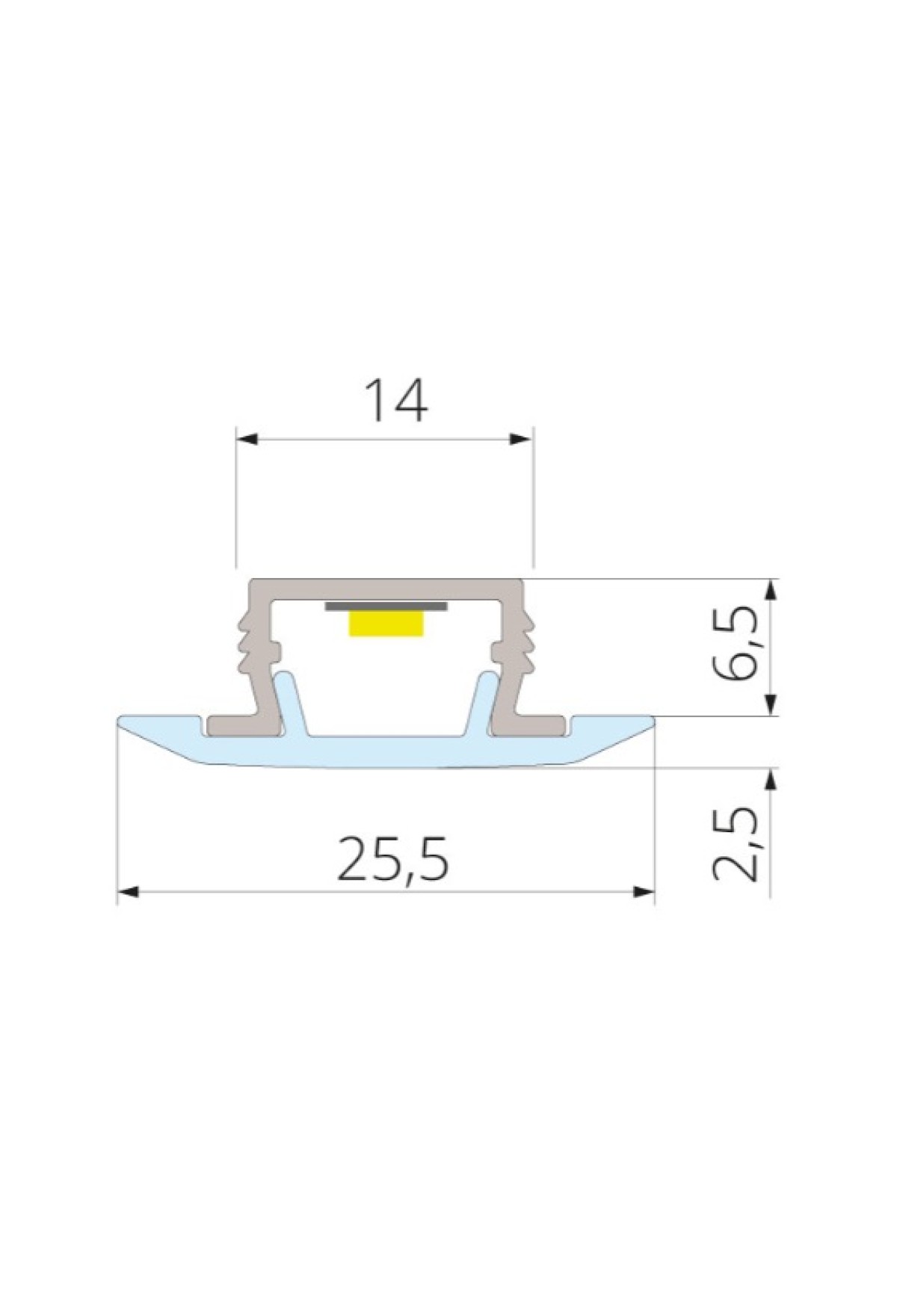 Врезной корпус светильника выполнен из алюминия и после установки невидим, рассеивающий экран полностью закрывает корпус. Подходит для поточного производства. Края выборки прикрыты «ушками корпуса» и рассеивателем. Выборку можно выполнять на высокоскоростном оборудовании. Глубина врезки всего 6,5мм — подойдет для ДСП небольшой толщины. Светильник имеет широкий угол светового потока — может использоваться в качестве мебельной или интерьерной подсветки. Для управления светильником подойдет любой внешний выключатель.