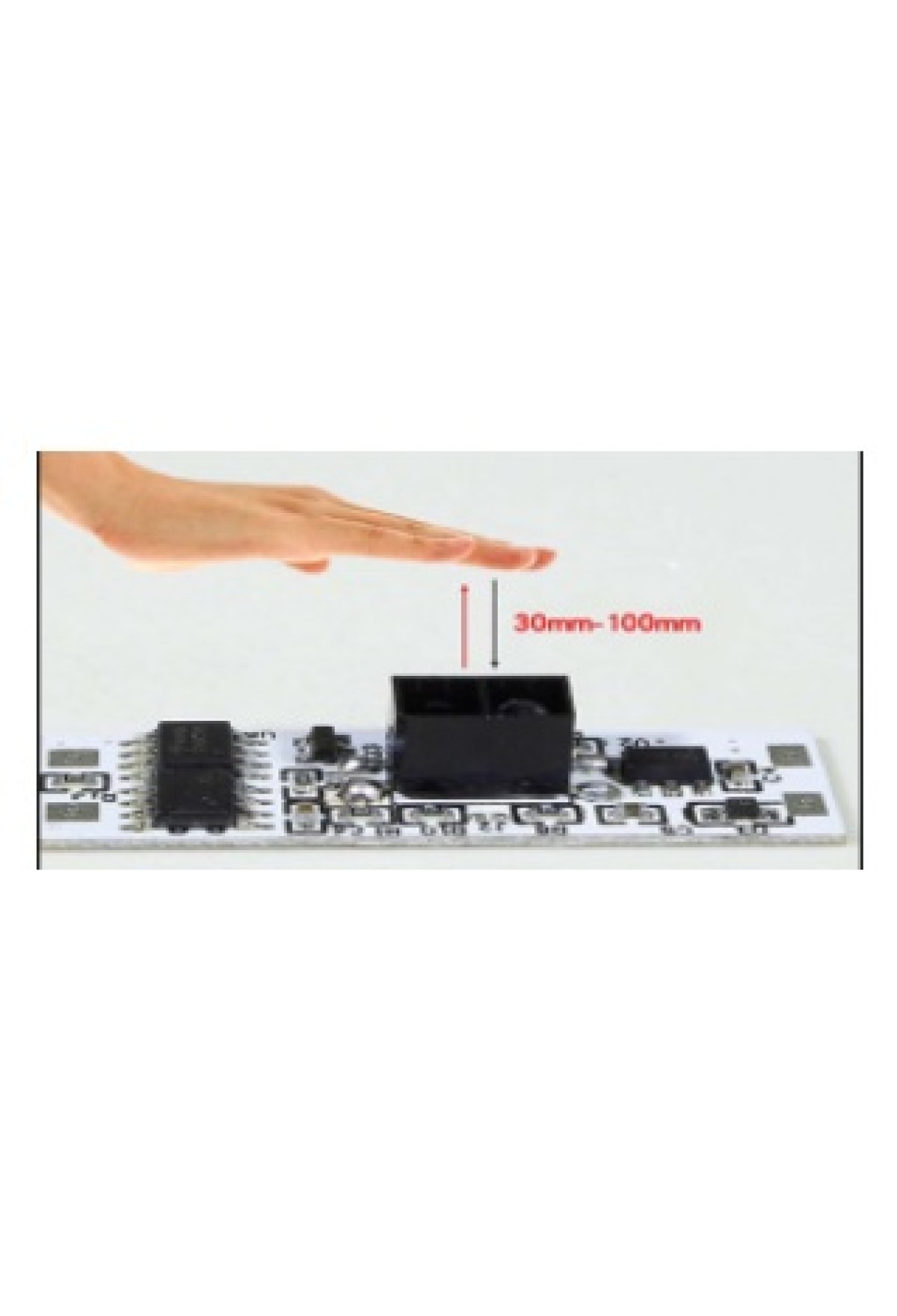 Устройство реагирует на движение руки. При улавливании движения руки вдоль датчика - плавное включение и выключение света. Если удерживать руку в зоне действия датчика, то регулируется яркость свечения.