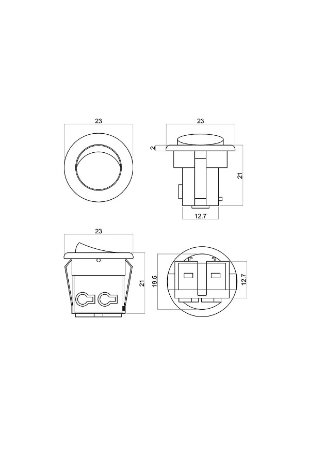 Технические характеристики выключатель клавишный врезной мебельный серый, 6А, D23мм/LED04005.GR/1
