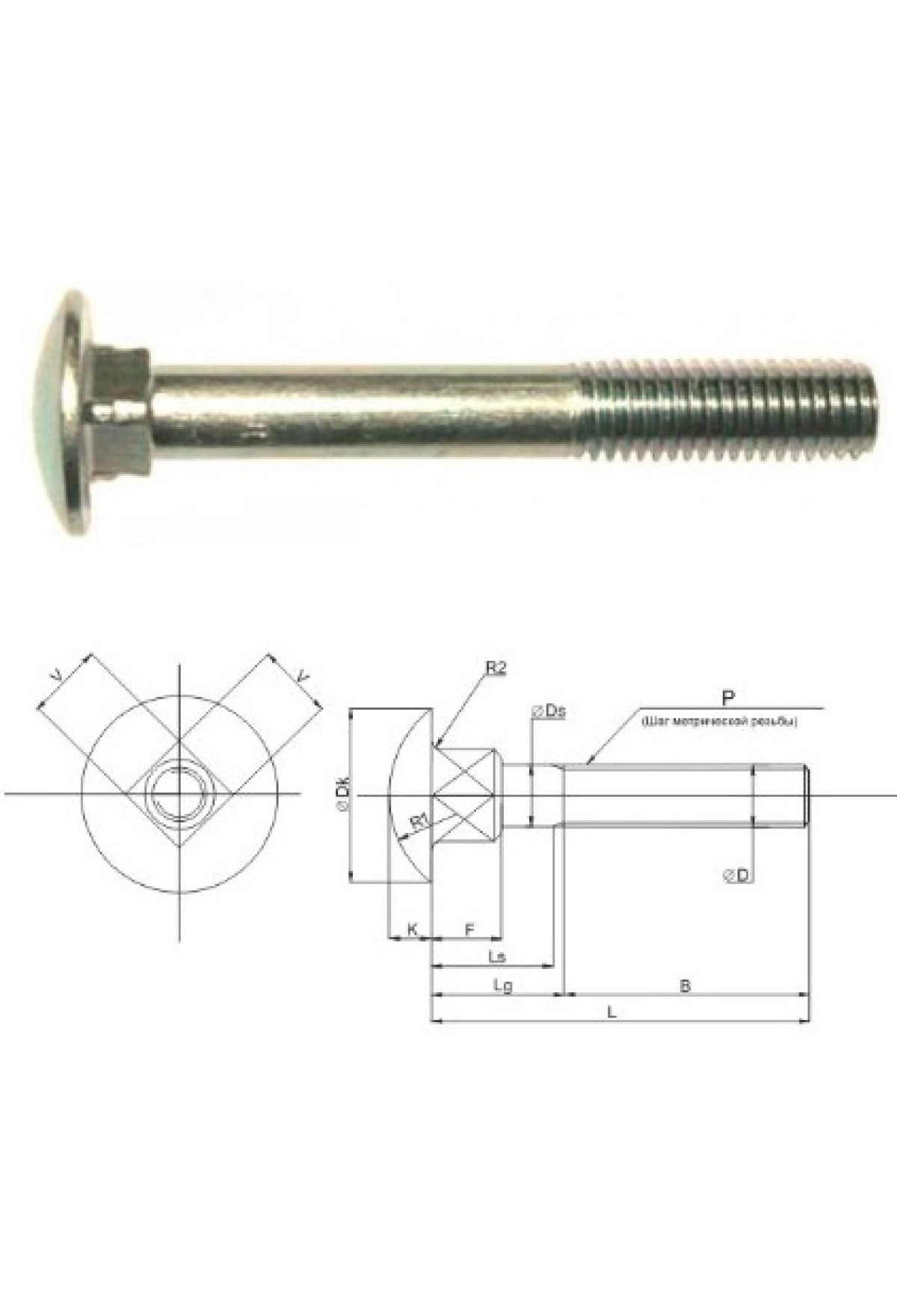 Технические характеристики болт DIN 603 8*80 полукруглая головка, кв подг, цинк