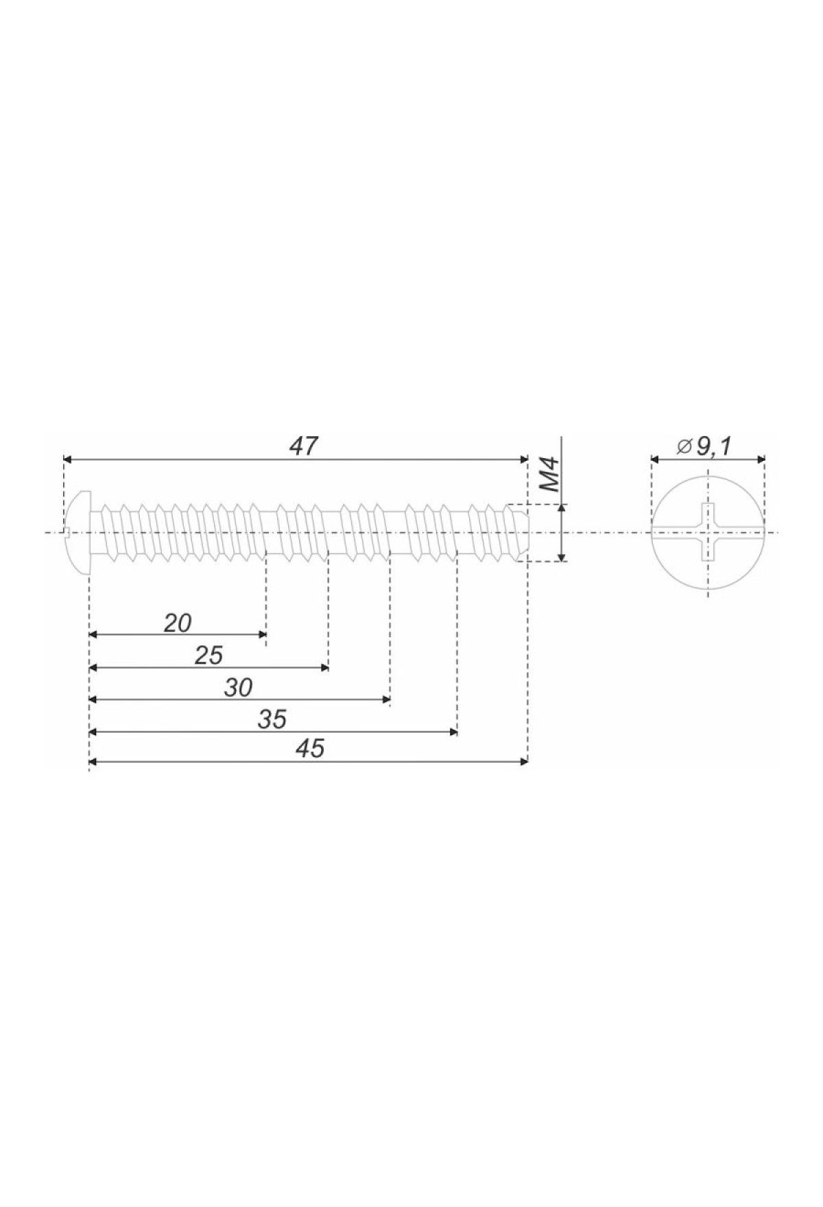 Сегментный винт с резьбой M4 для крепления мебельных ручек на фасады (МДФ/ДСП, пластика или стекла) толщиной от 10 до 40 мм.