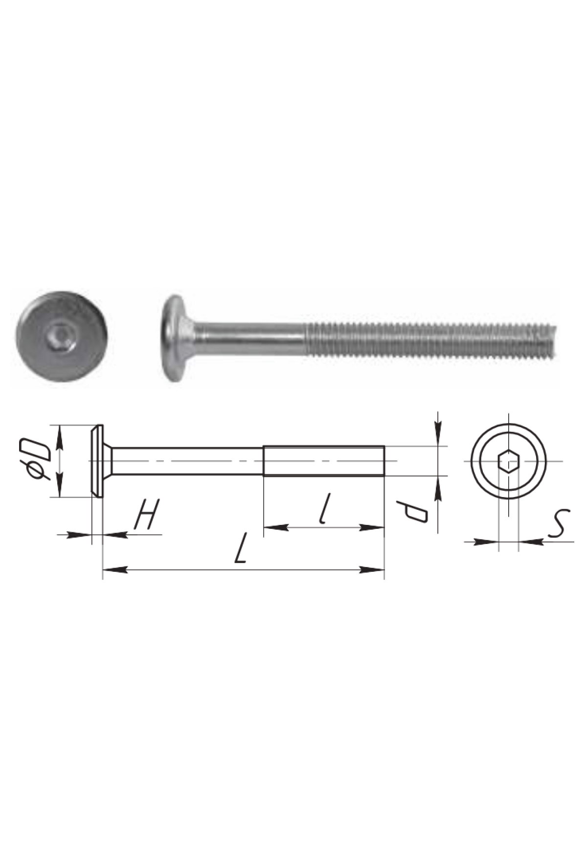 Технические характеристики винт М8*20 плоская головка с внутренним шестигранником, цинк