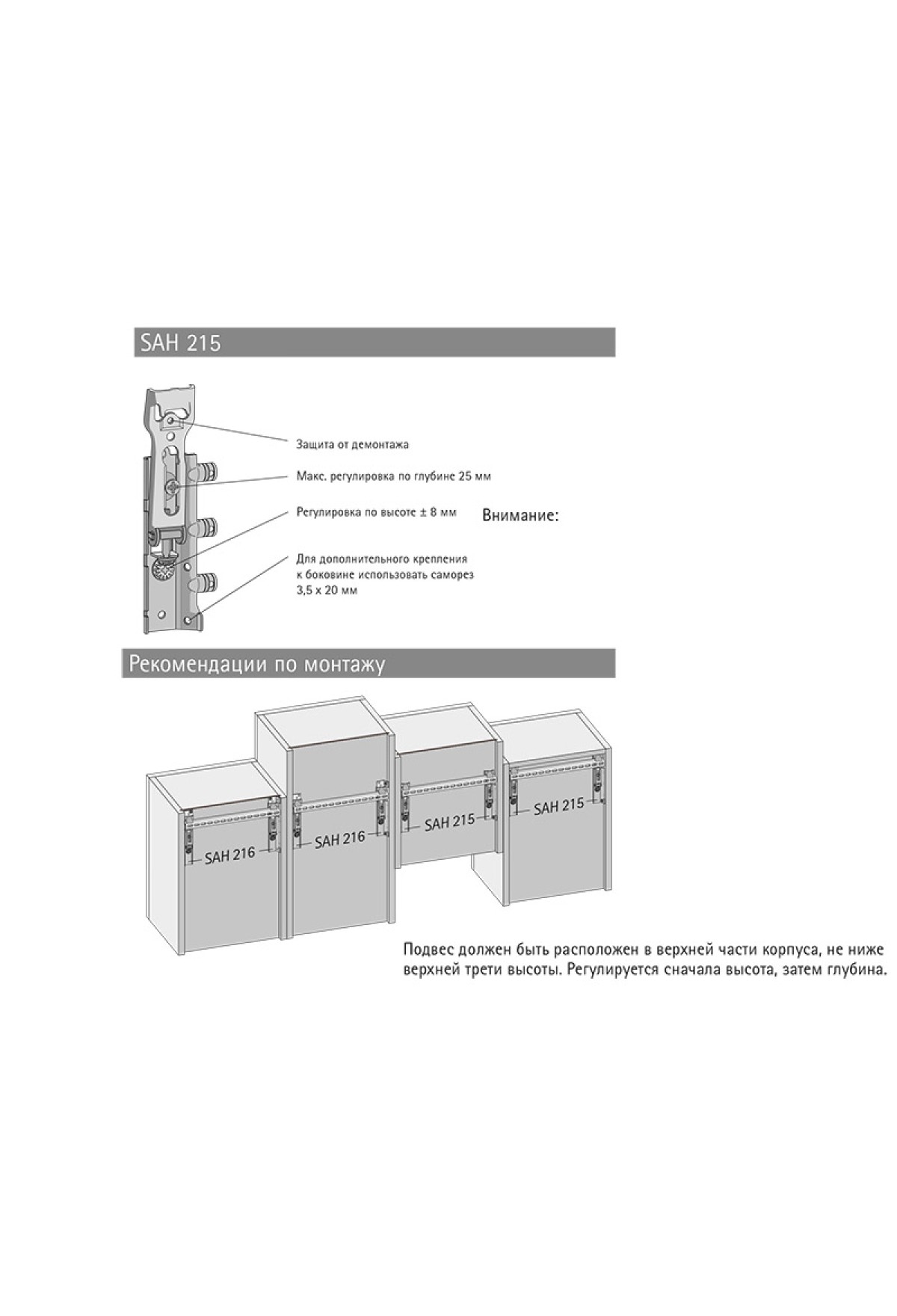 - Хеттих/навес SAH 215 д/шкафов, нагрузка 45кг, левый, цинк (100)/1069643