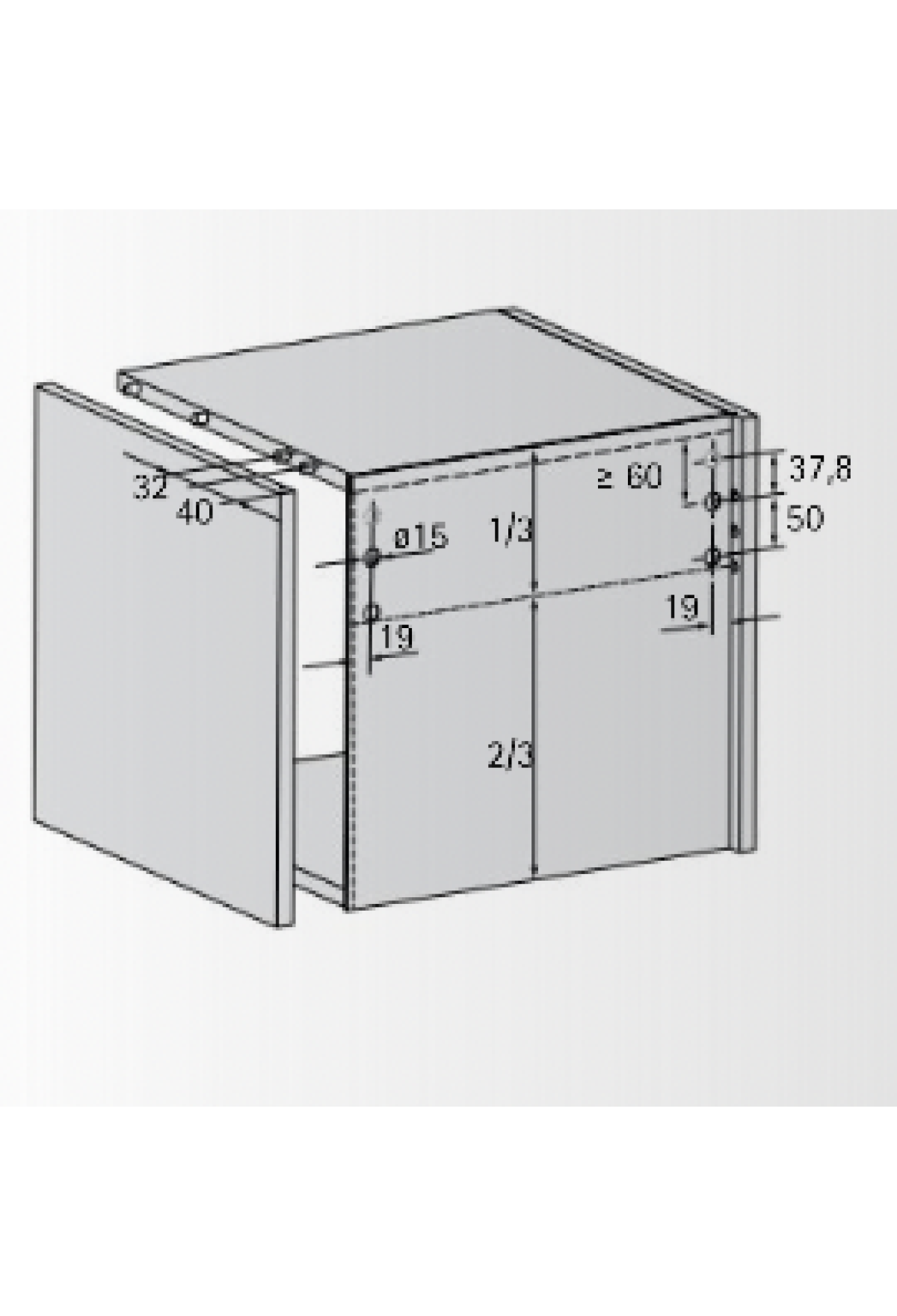 Монтаж тремя боковыми цапфами к боковине и винтами к задней стенке. SAH 216 может дополнительно прикручиваться к верхней панели корпуса.